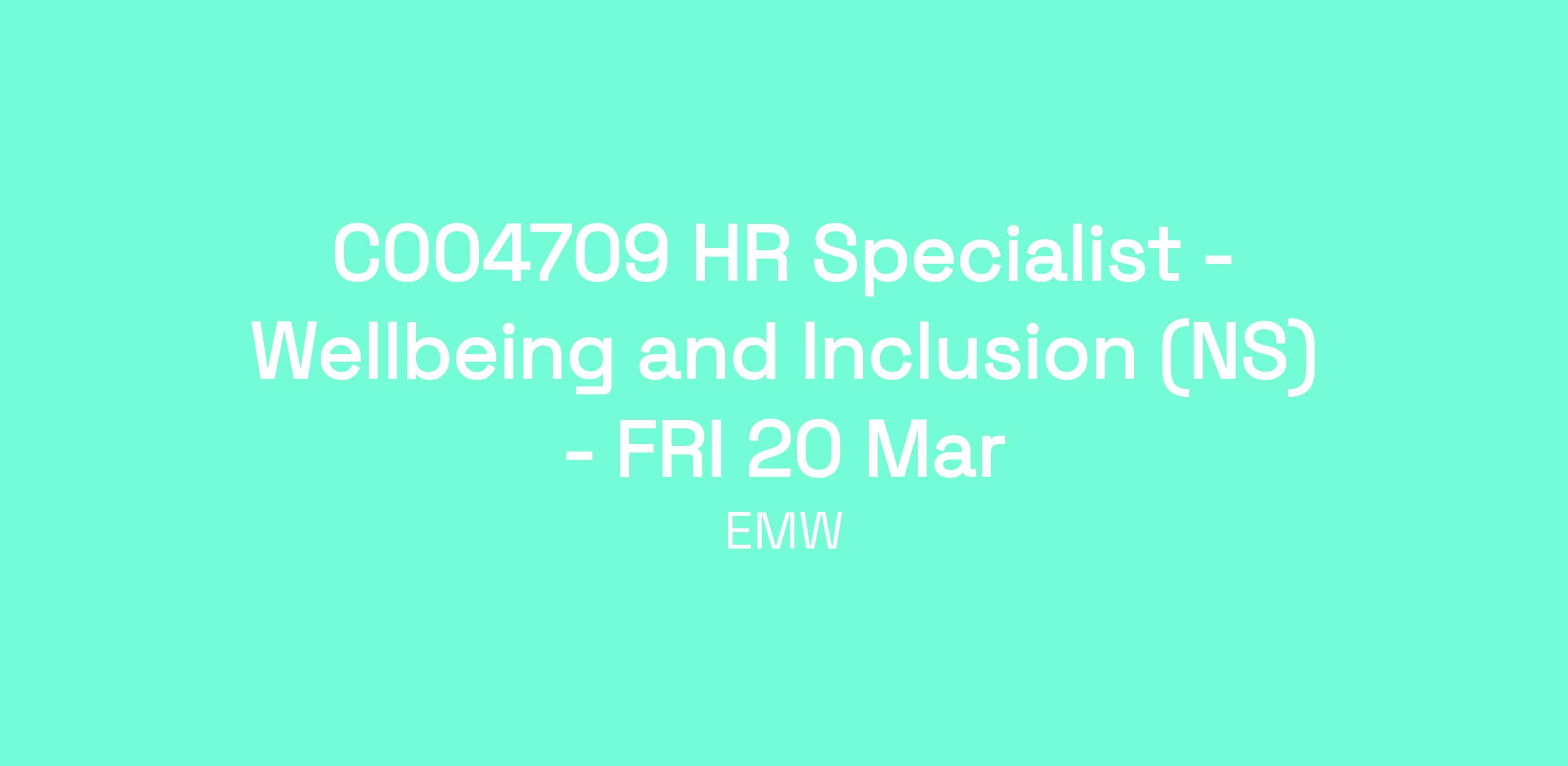 Requirement: HR Specialist – Wellbeing and Inclusion