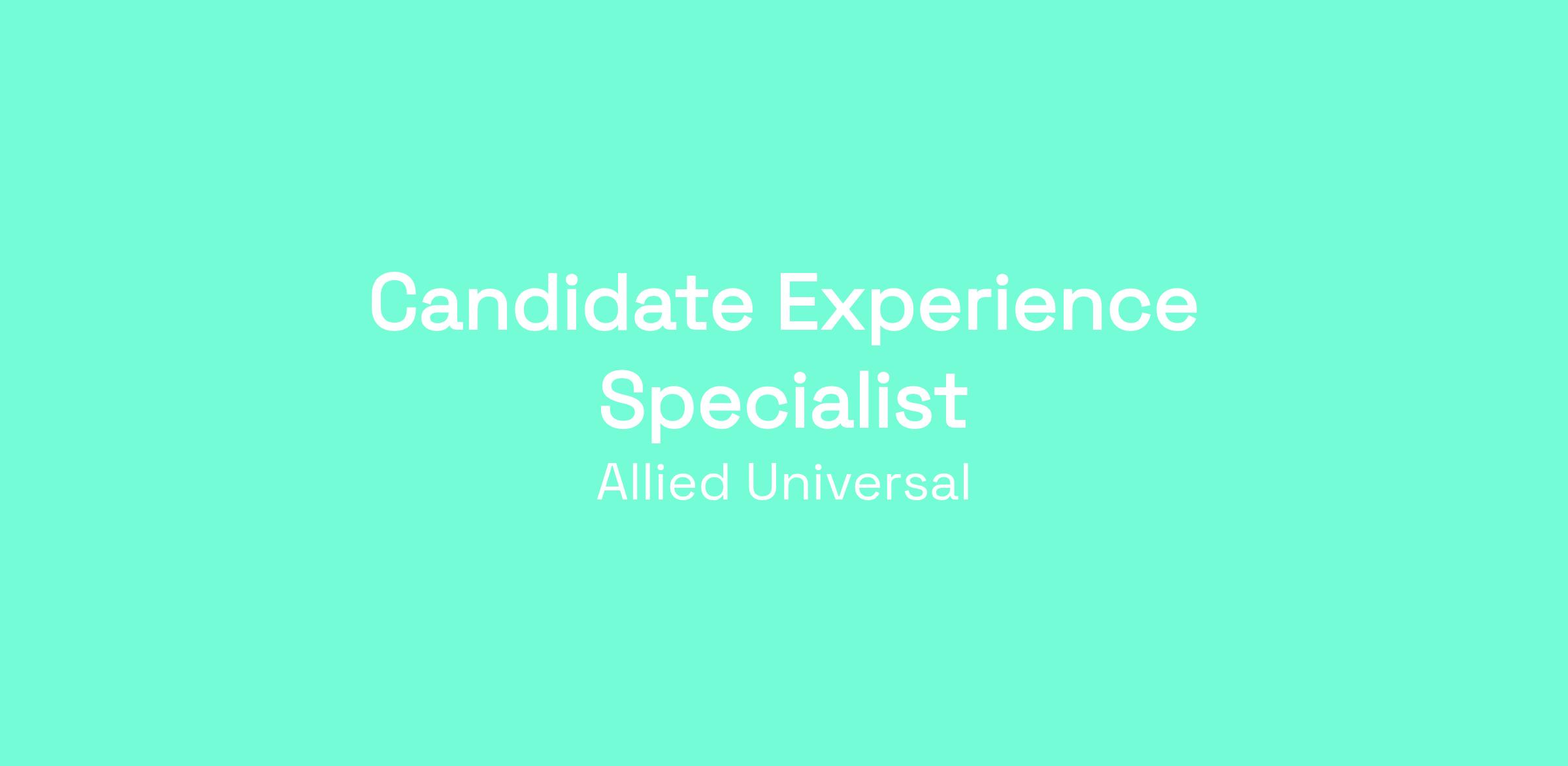 Allied Universal® is hiring a Candidate Experience Specialist. The Candidate Experience Specialist will offer a standardized, exceptional candidate experience that is welcoming and easy to use with a goal to minimize multiple contact points while navigating the hiring process at Allied Universal. The Candidate Experience Specialist’s role is to be the subject matter expert and face of the company to candidates in the specified market.
