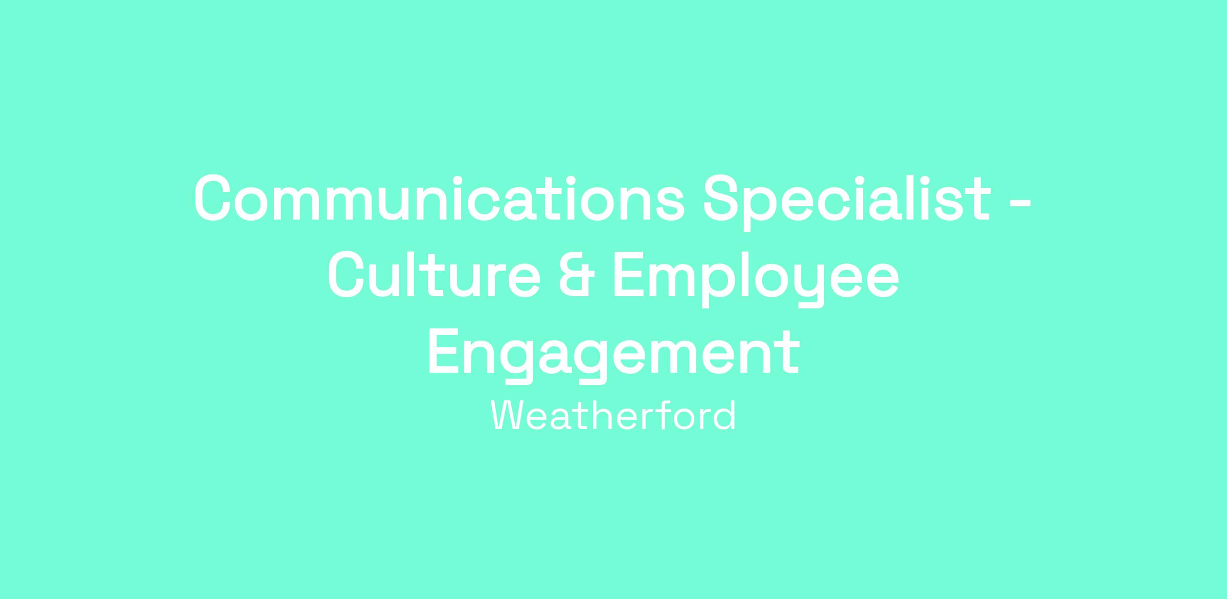 Weatherford have a very exciting opportunity for an experienced Communications Specialist Culture & Employee Engagement to join the team in Houston, Texas.