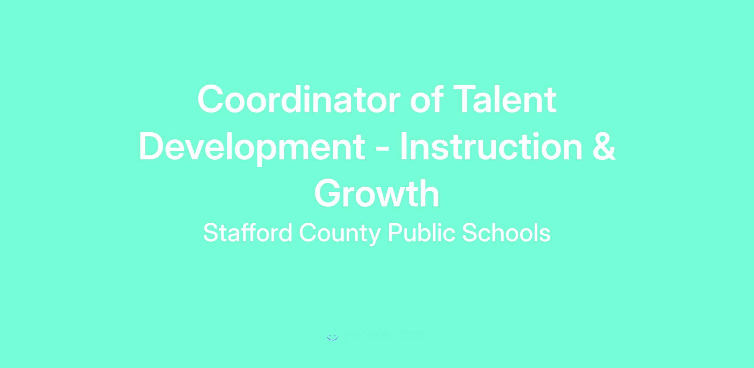 Under the direction of the Director of Talent Development, the Coordinator of Talent Development plans, develops, coordinates, facilitates, and monitors professional growth initiatives for all employees of Stafford County Public Schools (“Stafford Schools”). This role collaborates with and advises division stakeholders on the design and delivery of staff development programs, establishes clear learning objectives, evaluates the impact of professional learning, and supports projects across the Office of Human Resources and Talent Development (“HRTD”) to advance the goals of the Stafford Schools Strategic Plan.
