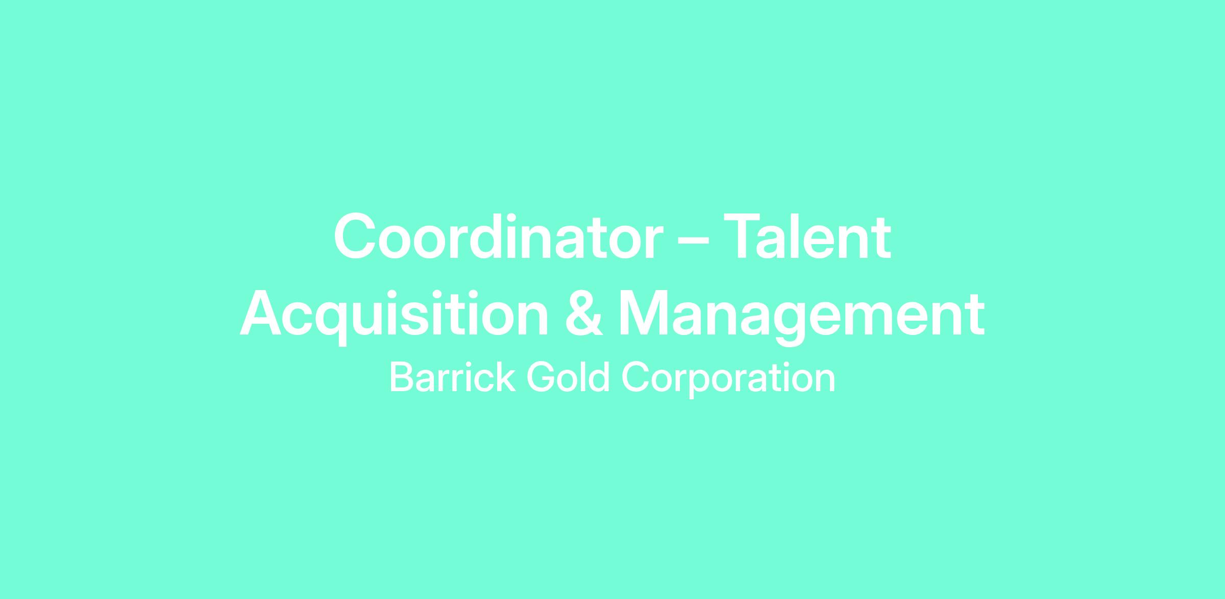 Lumwana Mining Company seeks to recruit highly motivated and committed individual for the position of Coordinator – Talent Acquisition & Management to join the versatile Human Resources department. We are in search of an individual who can champion Barrick's DNA by: