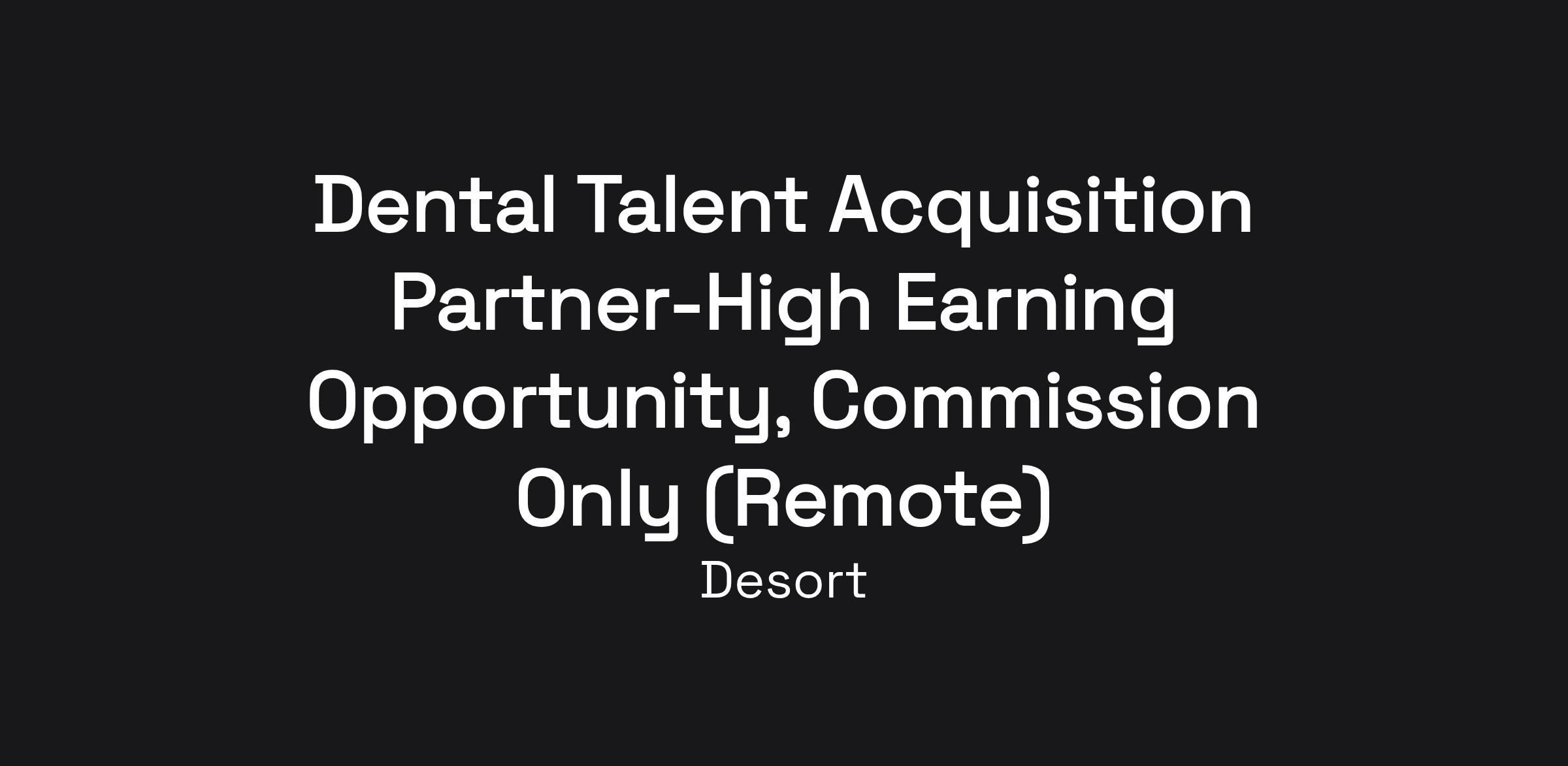 Desort is expanding our national dental recruitment division and seeking a Dental Talent Acquisition Partner — a hybrid role combining dentist recruiting, client relationship development, and placement sales.