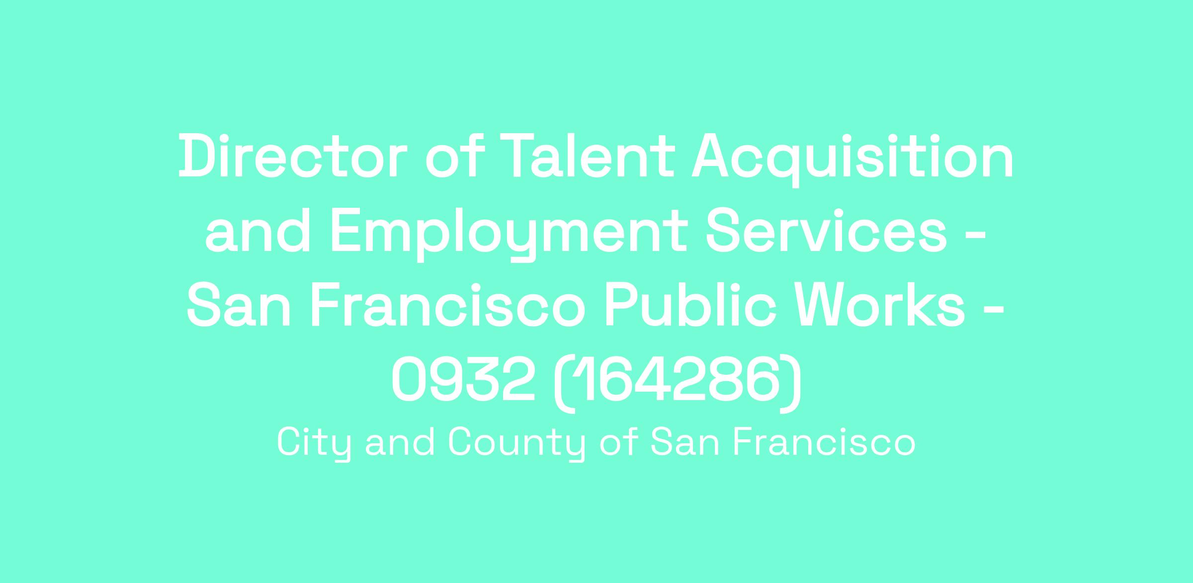 The SFPW Human Resources Division is seeking a Director of Talent Acquisition and Employment Services to oversee our Talent Acquisition (Exams)/Classification, Employment Services (HR Operations) and Payroll teams.