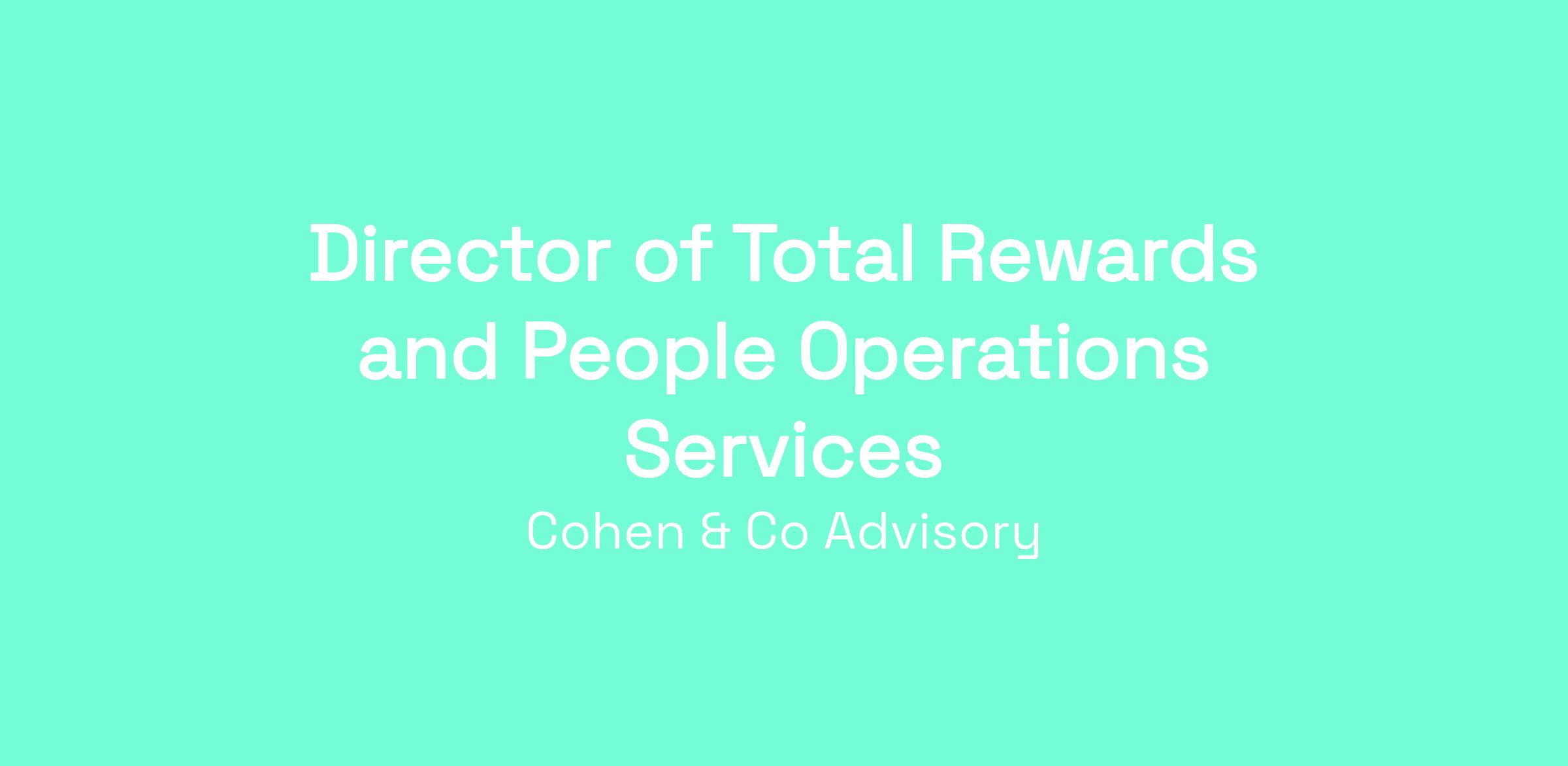 Cohen & Co is seeking a strategic and hands-on Director of Total Rewards and People Operations Services to lead the firm’s compensation, benefits, payroll, and people operations infrastructure. This leader will design a competitive, data-driven, and financially responsible total rewards strategy that aligns with our growth agenda, professional services model, and culture of excellence.