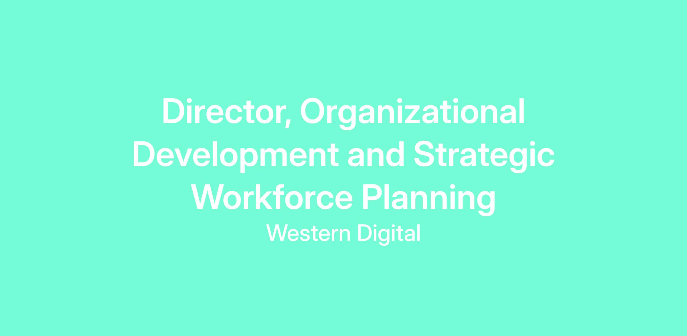 The Director, Organizational Development and Strategic Workforce Planning will architect Western Digital's enterprise-wide approach for Workforce Planning, Organization Design and Team Effectiveness. This role combines strategic thinking with hands-on execution, requiring expertise in organizational design principles and workforce planning.