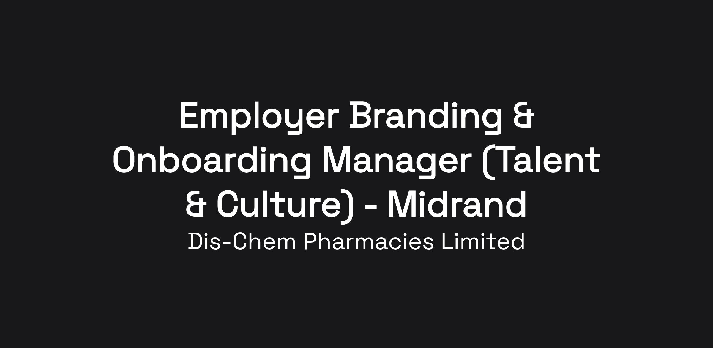 Dis-Chem Pharmacies are looking for an experienced Employer Branding & Onboarding Manager who has two main accountabilities: