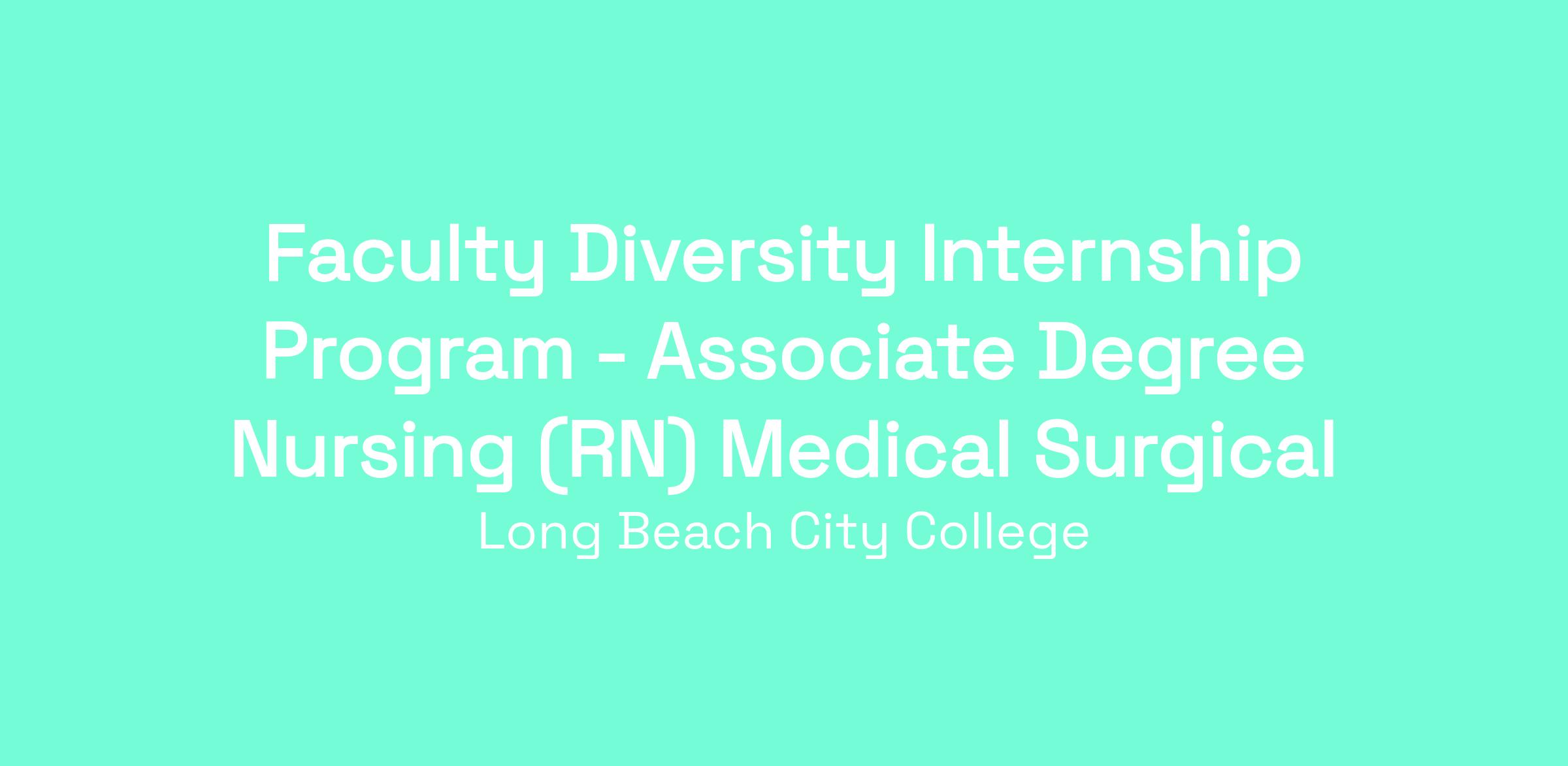 Faculty Diversity Internship Program Pool: ASSOCIATE DEGREE NURSING (RN) MEDICAL SURGICAL