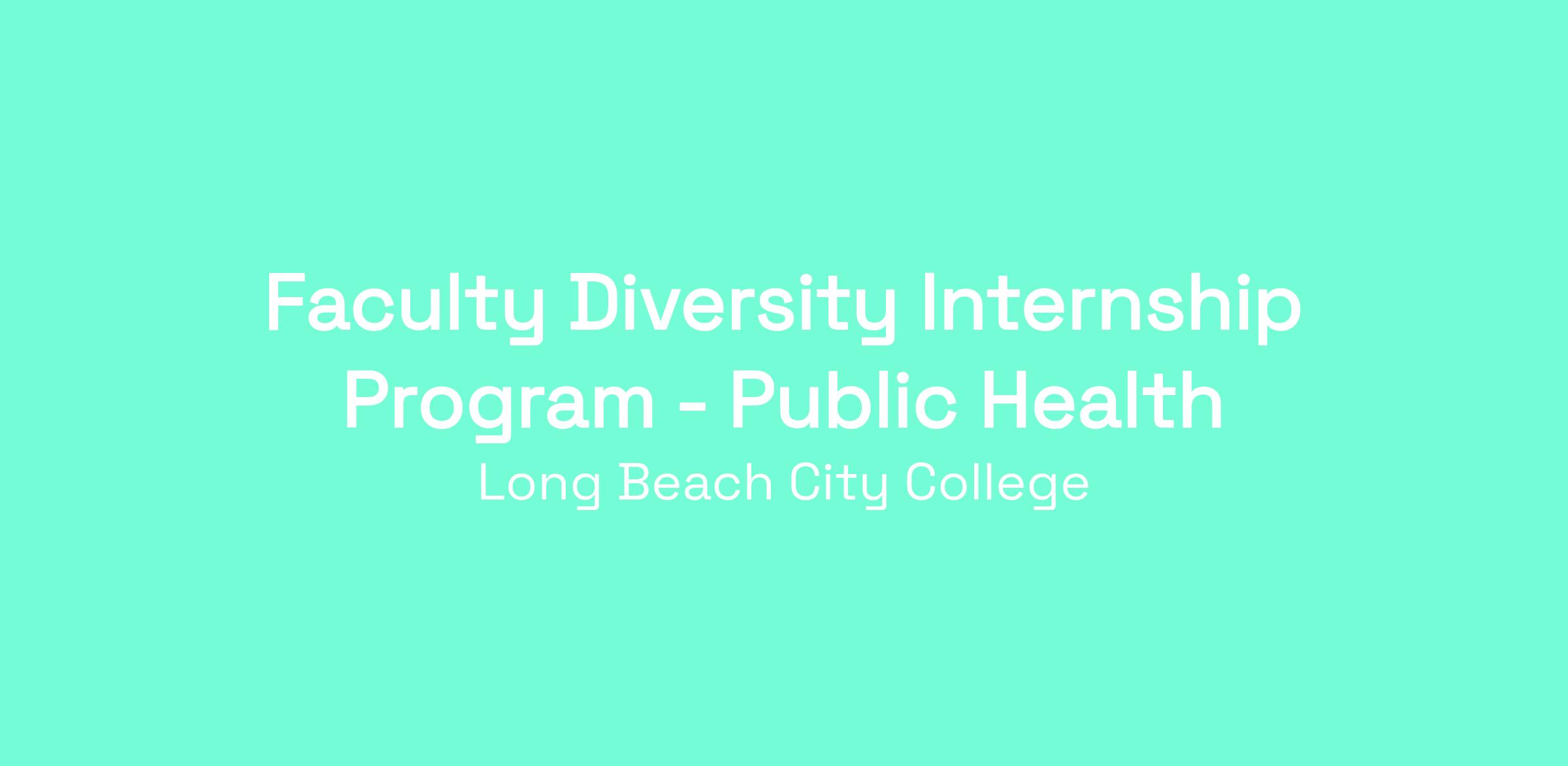 Faculty Diversity Internship Program Pool: PUBLIC HEALTH