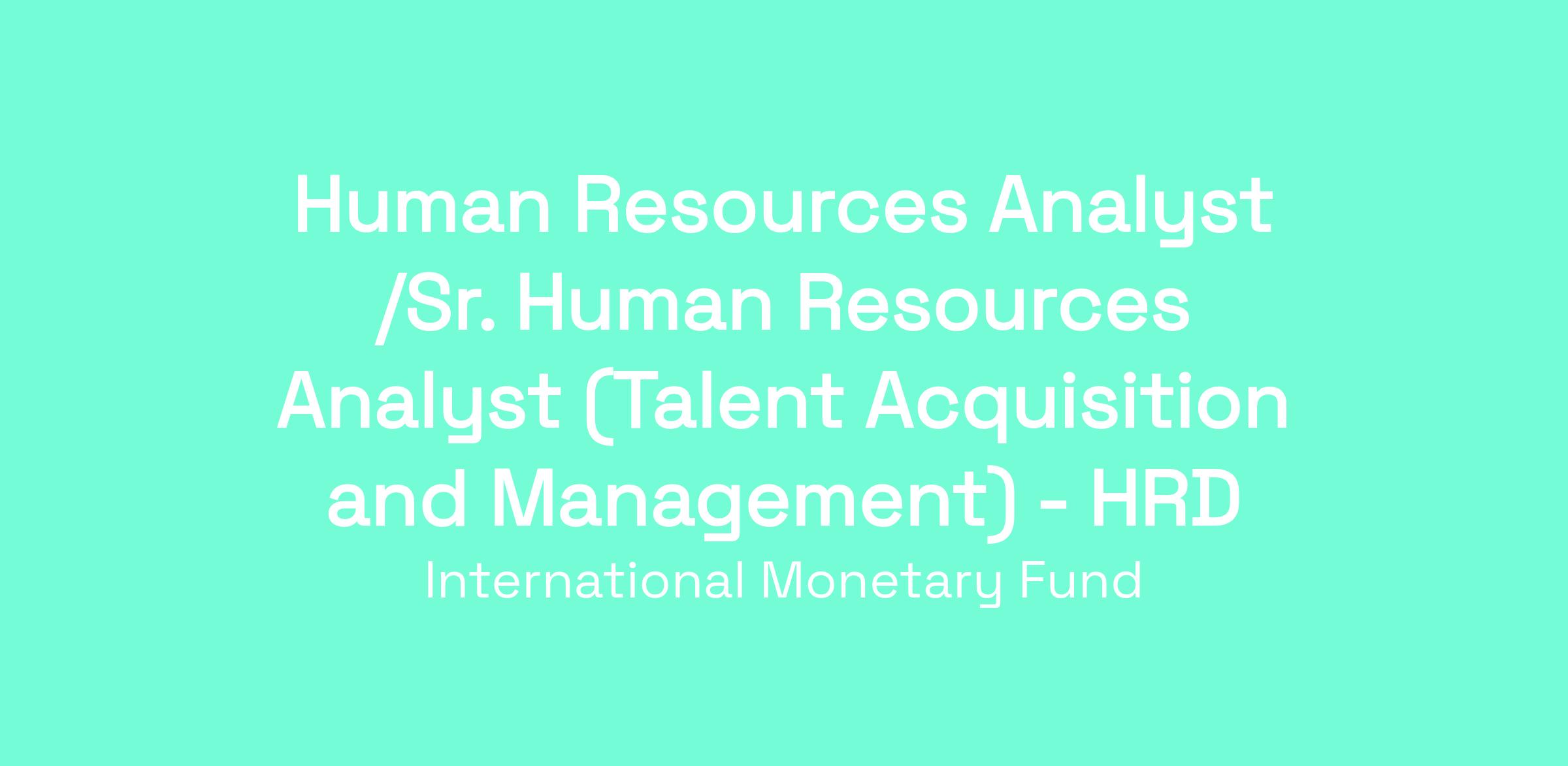 The Human Resources Department (HRD) of the International Monetary Fund (IMF) has a vacancy for a Senior Human Resources Analyst to provide high-touch logistical and operational support for the delivery of centralized recruitment programs.