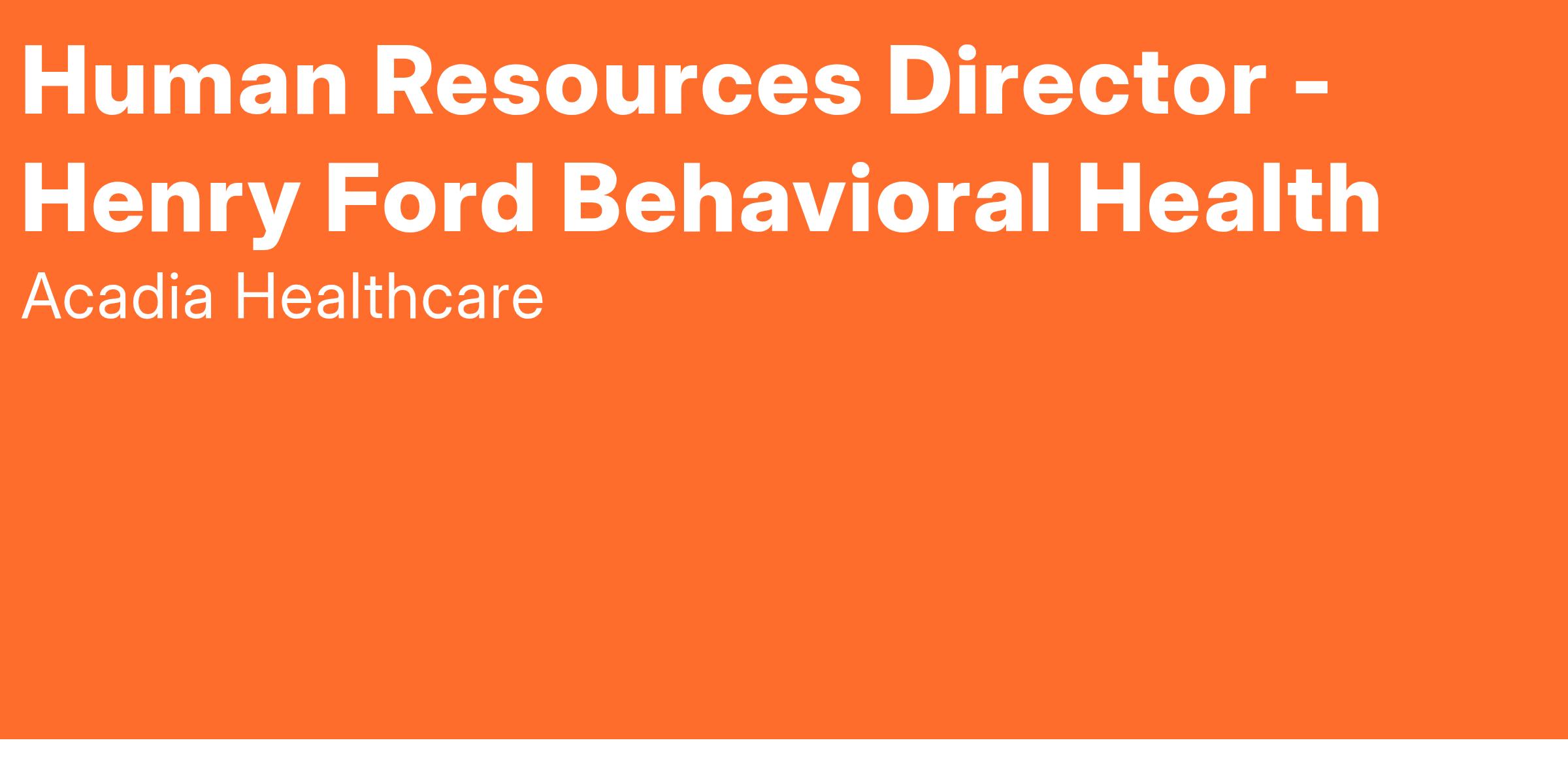 Henry Ford Behavioral Health Hospital is seeking an experienced Human Resources Director to join the team!