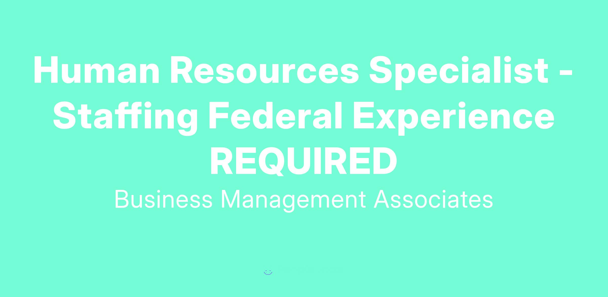Business Management Associates (BMA) is seeking a Human Resources Specialist (Staffing) who will provide (cradle-to-grave) hiring support for recruitment and staffing assignments, to include job analyses, qualification analysis, rate and rank, direct hire, draft and post announcements, coding, and processing of personnel actions.