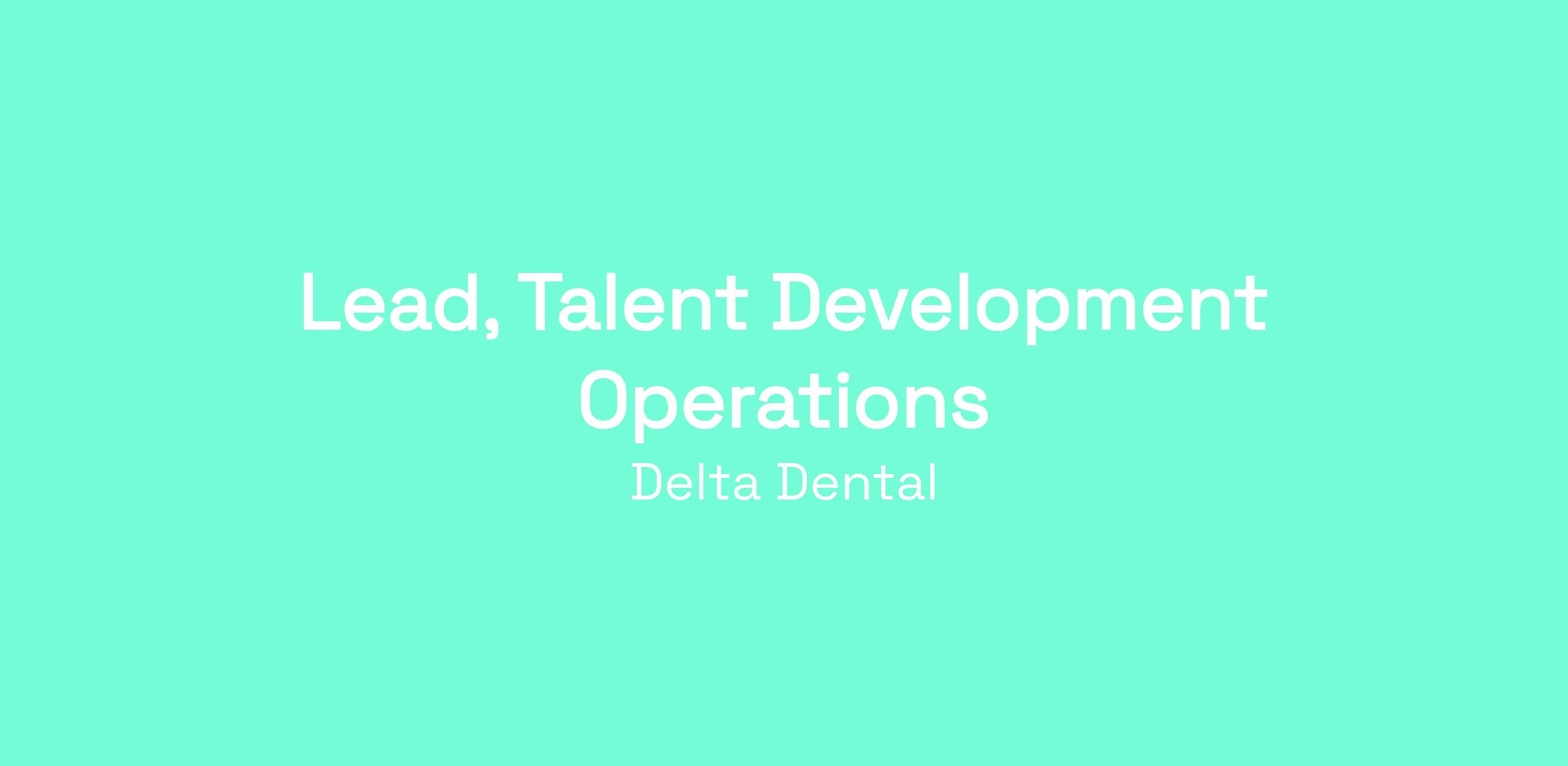 Lead, Talent Development Operations
