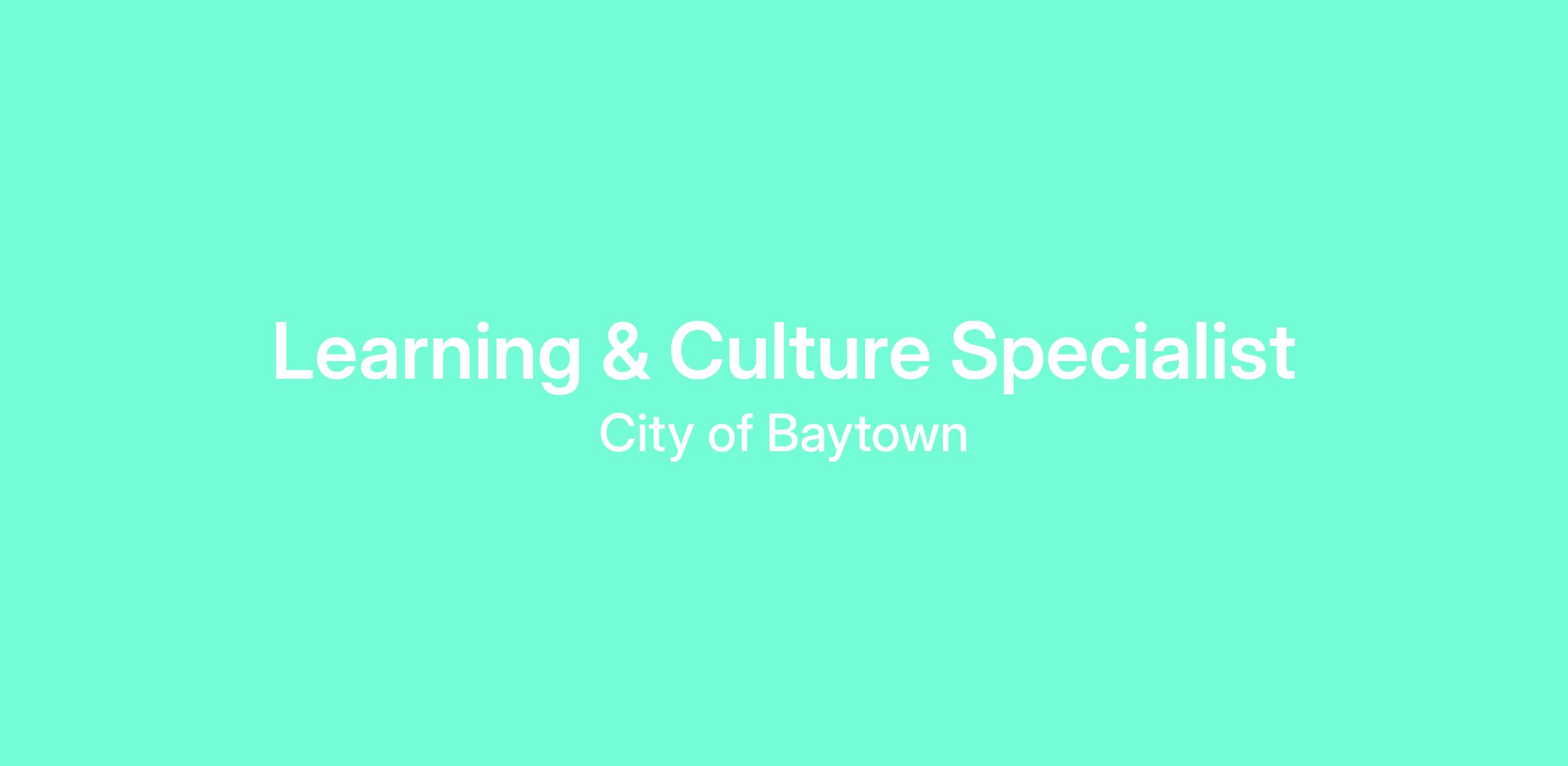 The Learning & Culture Specialist is a key position within the City of Baytown that helps champion growth and engagement within the organization. This position works with the Learning & Culture Manager to develop, implement, and maintain the City’s Learning Management System, assist with employee engagement, retention, recognition initiatives, and lead continuous improvement initiatives.