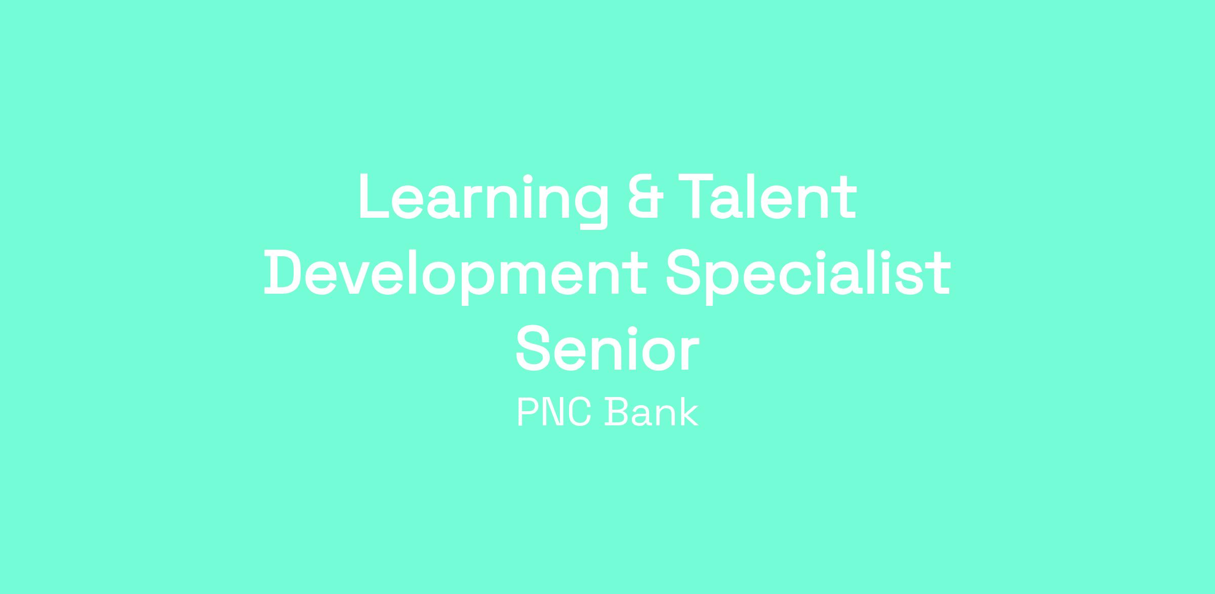 At PNC, our people are our greatest differentiator and competitive advantage in the markets we serve. We are all united in delivering the best experience for our customers. We work together each day to foster an inclusive workplace culture where all of our employees feel respected, valued and have an opportunity to contribute to the company’s success. As a Learning & Talent Development Specialist Senior within PNC's Human Resources organization, you will be based in Pittsburgh, PA, Cleveland, OH, Birmingham, AL, Dallas, TX, Denver, CO or Downers Grove, IL.