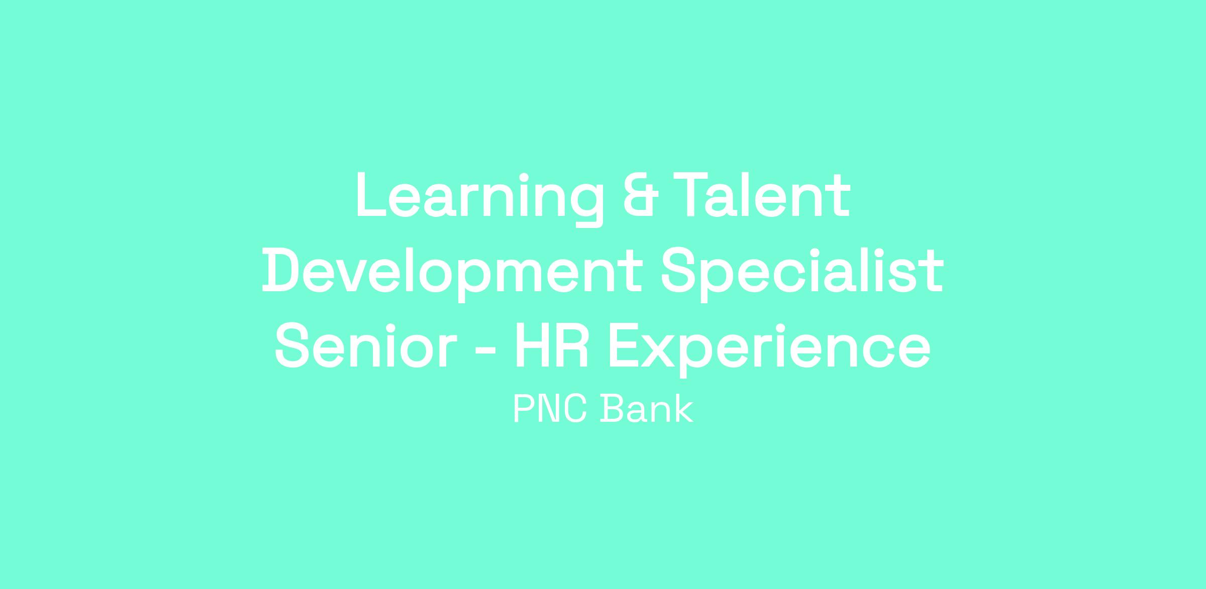 At PNC, our people are our greatest differentiator and competitive advantage in the markets we serve. We are all united in delivering the best experience for our customers. We work together each day to foster an inclusive workplace culture where all of our employees feel respected, valued and have an opportunity to contribute to the company’s success. As a Learning & Talent Development Specialist Senior within PNC's Human Resources organization, you will be based in Pittsburgh, PA, Cleveland, OH, Birmingham, AL, Downers Grove, IL or Denver, CO.