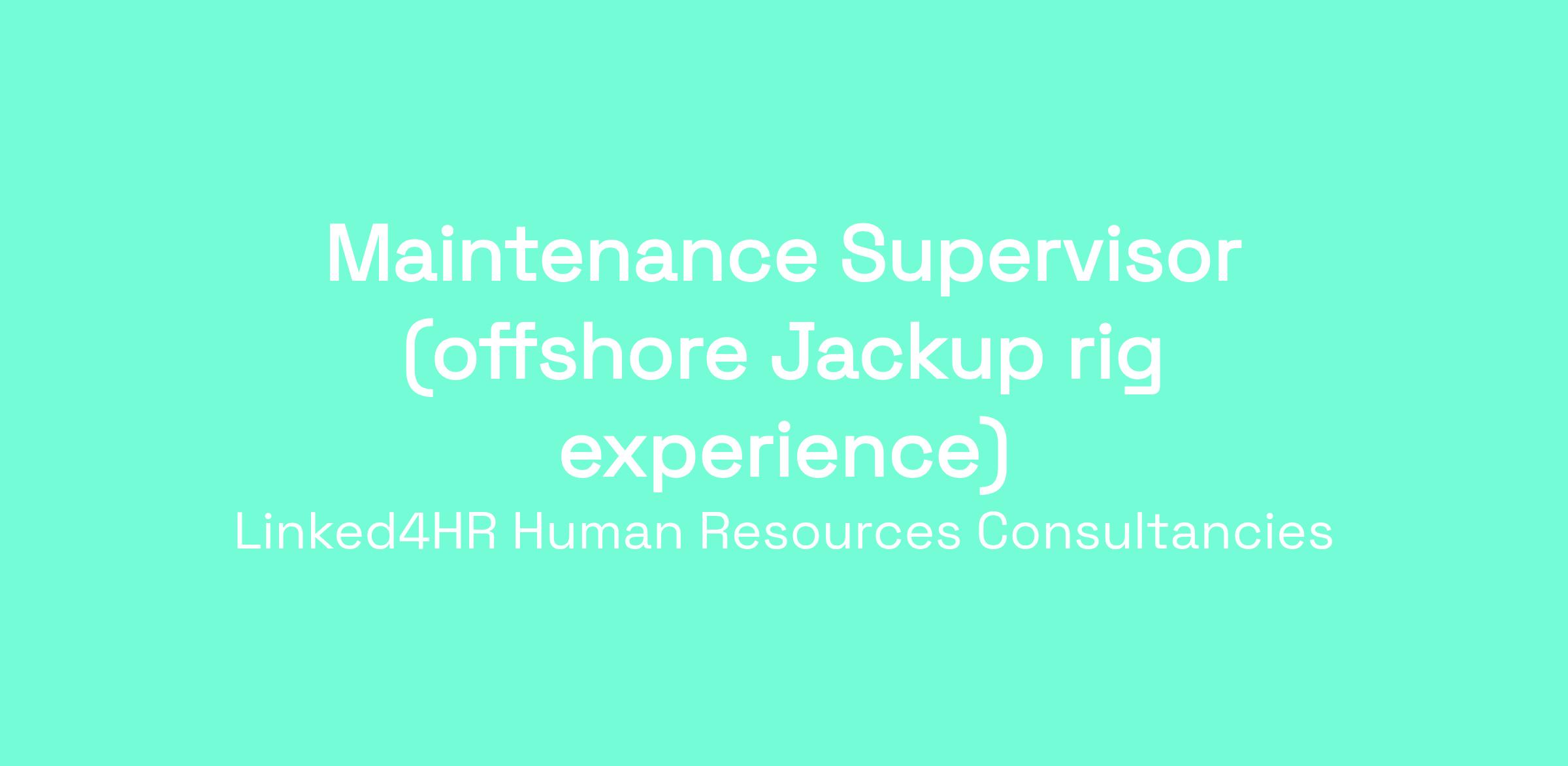 We are seeking an experienced Maintenance Supervisor to join our client's Jackup rig which is currently in the UAE and will later move to Brazil.