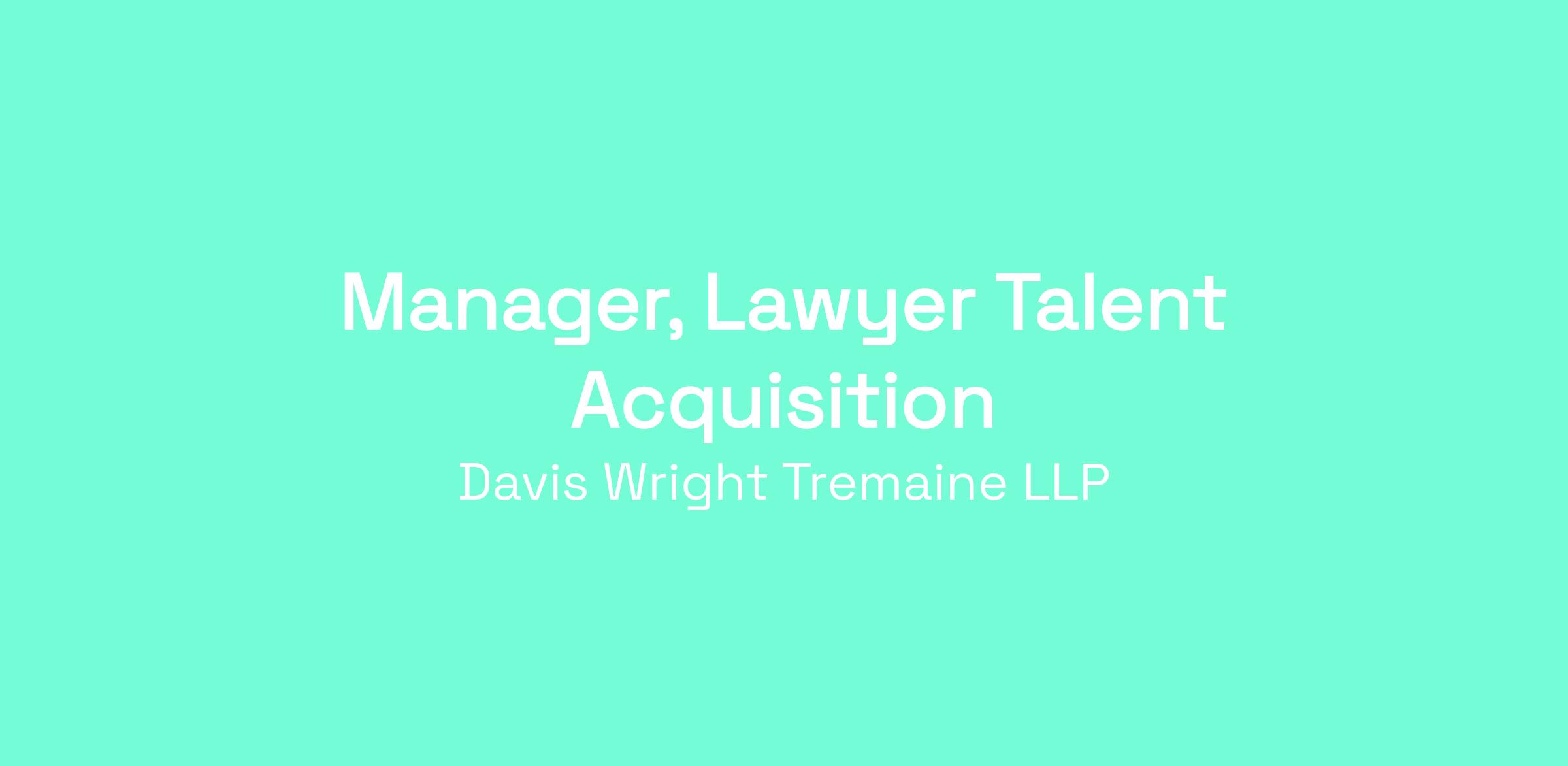 This is an exciting opportunity to work for one of the top law firms in the U.S.! Davis Wright Tremaine LLP is looking for a Manager, Lawyer Talent Acquisition to join our team in our New York or Washington D.C. offices.