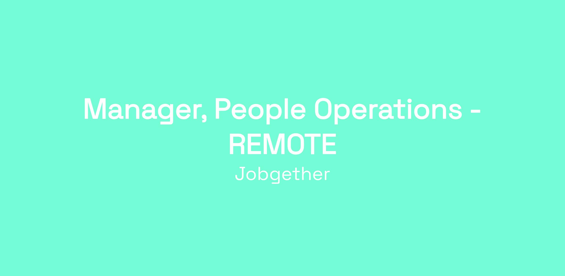 Manager, People Operations - REMOTE