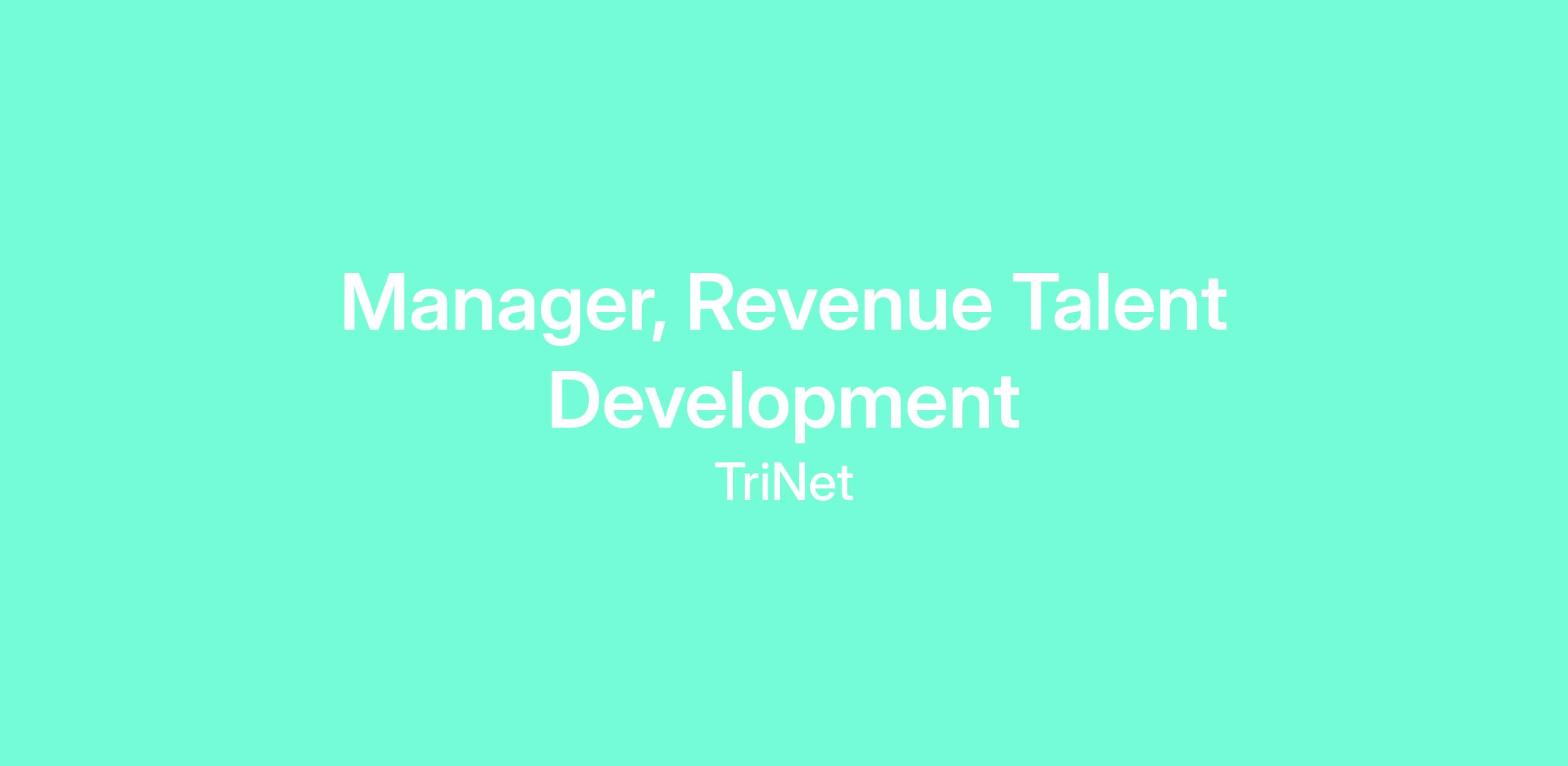 We're seeking an experienced and hands-on Manager, Revenue Talent Development to lead, develop, and oversee a team of Associate Sales Consultants (ASC). This leader will play a pivotal role in driving operational excellence, sales support effectiveness, and sales enablement strategy in collaboration with our Senior Sales Consultants and broader sales organization. The ideal candidate thrives in a fast-paced environment, is passionate about developing talent, and excels at optimizing processes and sales support workflows. Team Management: Recruit, onboard and mentor ASC's. Provide ongoing coaching, performance feedback and professional development opportunities with the intent to have your team promoted into Field SC roles. Deal Support: Provide strategic direction for ASC's involvement in meetings, prospect calls, follow-ups and scheduling. Review and improve email template, follow-up communications and meeting preparation materials. Internal Partnerships: Serve as sales ambassador for your ASC's. Partner with local sales leaders and across TriNet departments to collect feedback and adjust program expectations as needed Learning & Development: Drive continuous learning through formal training sessions, sales workshops and deal reviews. Budget: Manage to allocated budget for field visits and team building activities.