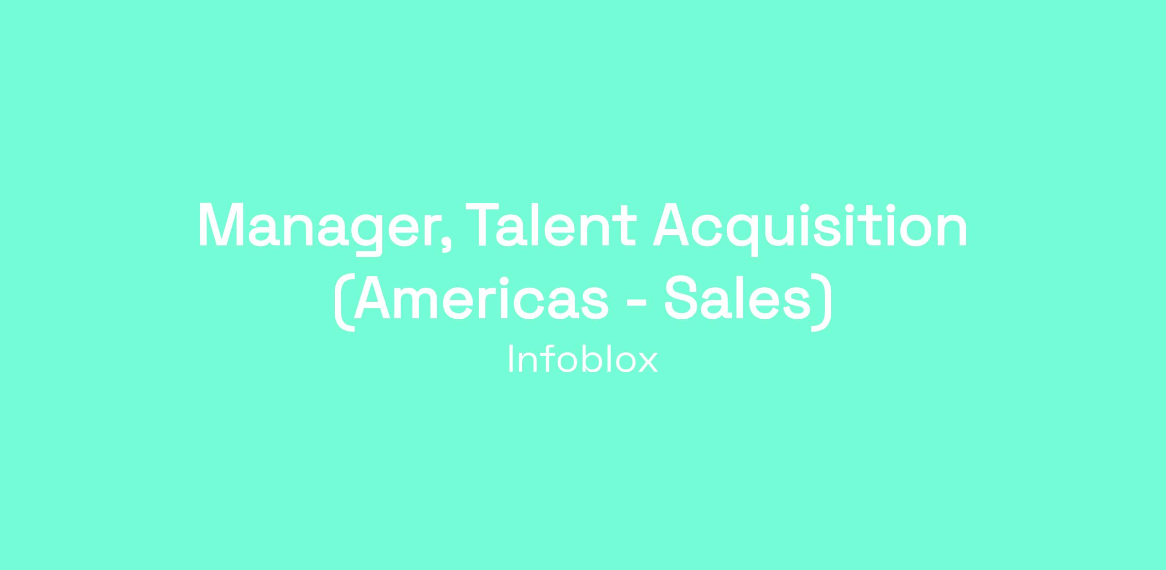 Manager, Talent Acquisition (Americas - Sales)