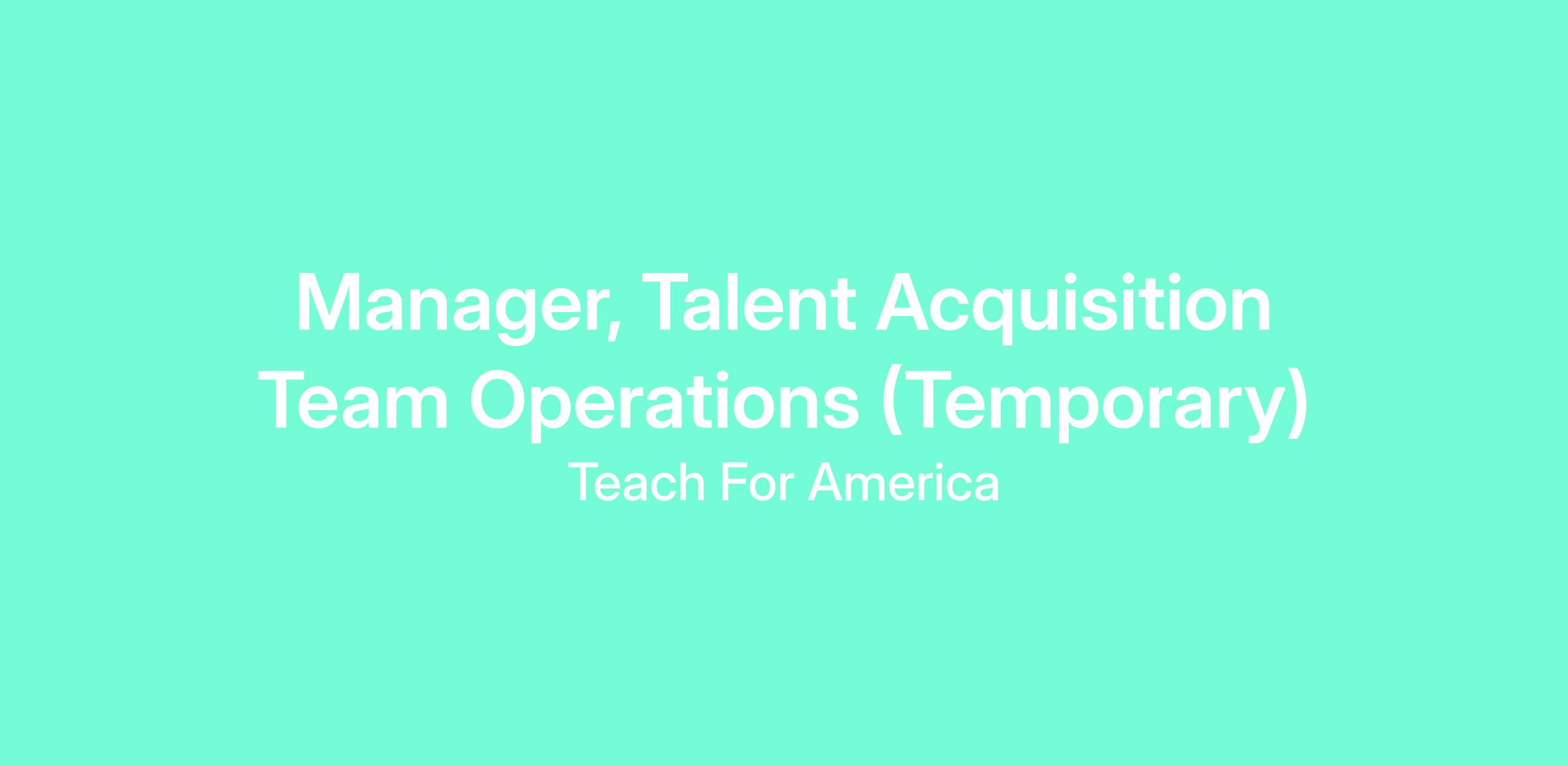 ROLE TITLE: Manager, Talent Acquisition Team Operations