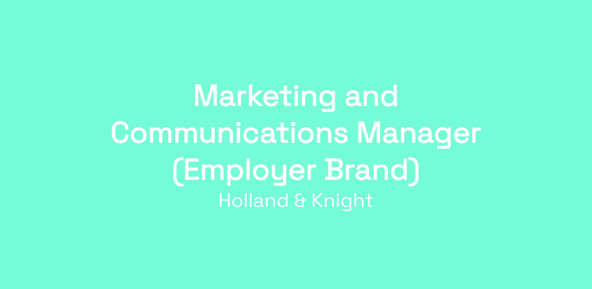 We are seeking a Marketing and Communications Manager (Employer Brand) to join our team. The Marketing and Communications Manager (Employer Brand) is responsible for developing and advancing the firm’s employer brand and ensuring that Holland & Knight’s brand platform is consistently expressed across the full talent lifecycle – from recruiting through alumni engagement. Embedded within the Marketing/Brand, Communications and Digital Media function, and working closely with the Human Resources leadership team, this role serves as the strategic liaison between HR and Marketing, translating HR initiatives into clear, compelling communications and ensuring the firm’s brand is reflected in how Holland & Knight engages current and prospective talent. This role is responsible for shaping and maintaining the firm’s employer value proposition across digital channels and internal platforms, strengthening Holland & Knight’s ability to attract, engage and retain exceptional lawyers and business professionals.
