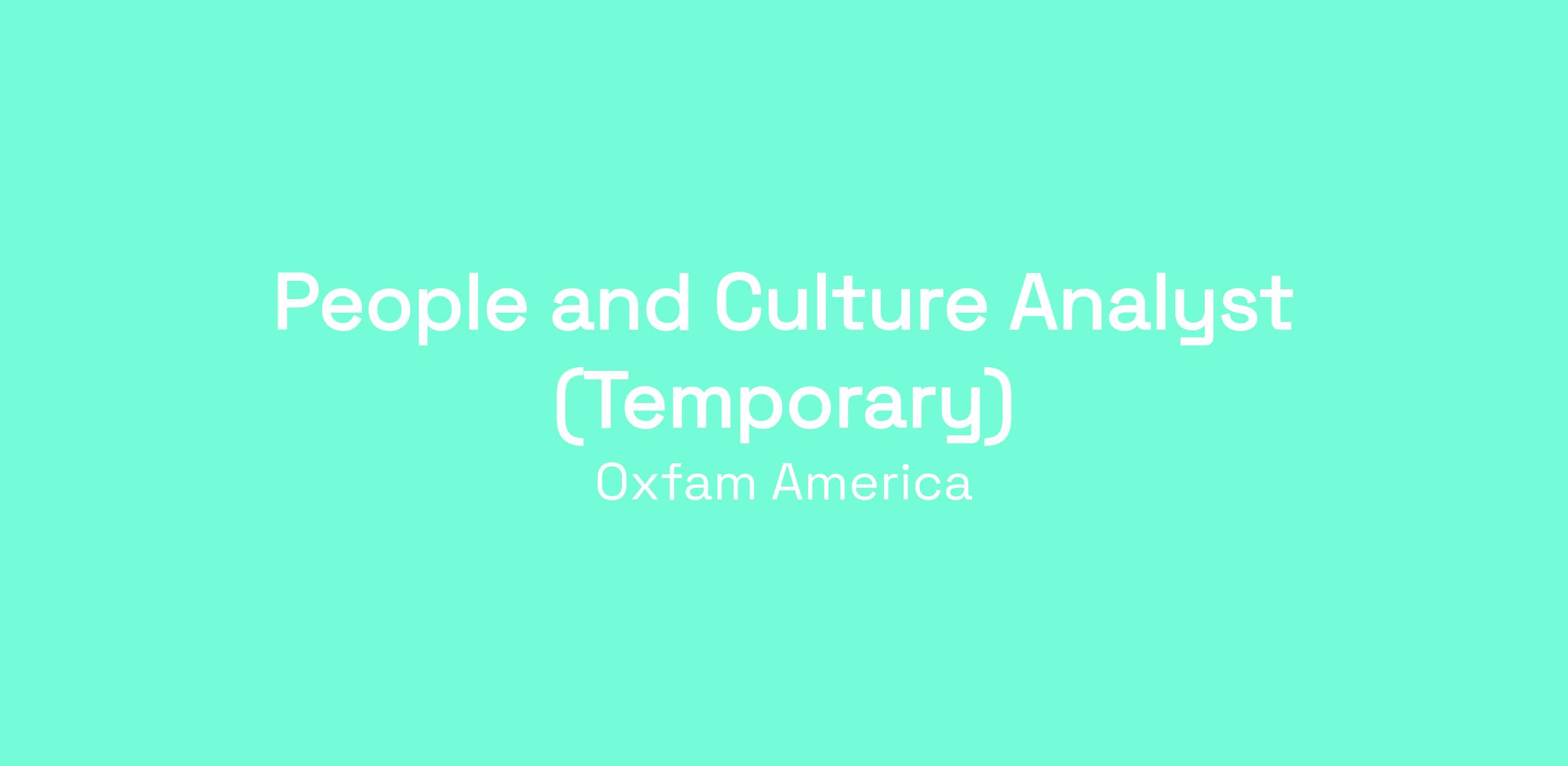 The People and Culture & Global HR (PCHR) Analyst (Temporary) is skilled and passionate about supporting the full Employee Life Cycle inclusive of HRIS, Total Rewards, Talent Acquisition, Employee Engagement, Racial Equity, and HR Operations. In this capacity, they will create and maintain collaborative partnerships across HR spaces to deliver value-added services of PCHR to all employees that enhances the business objectives of Oxfam America. The position also includes responsibilities related to data audits, documentation of HRIS processes, managing reporting and data functions, assisting in diversity, equity, and inclusion (DEI) initiatives, coordinating learning presentations, and providing feedback and support to senior PCHR members and management team.