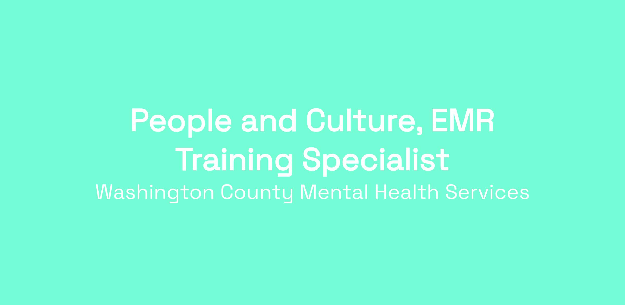 DescriptionThe People and Culture EMR Training Specialist works closely with Monitoring and Information Technology to identify challenges in Electronic Medical Records usage and design targeted trainings to address those trends. As part of the People and Culture training team, this position develops and delivers engaging EMR training, manages completion tracking and documentation requirements, and integrates training activities into the agency's broader learning management system.