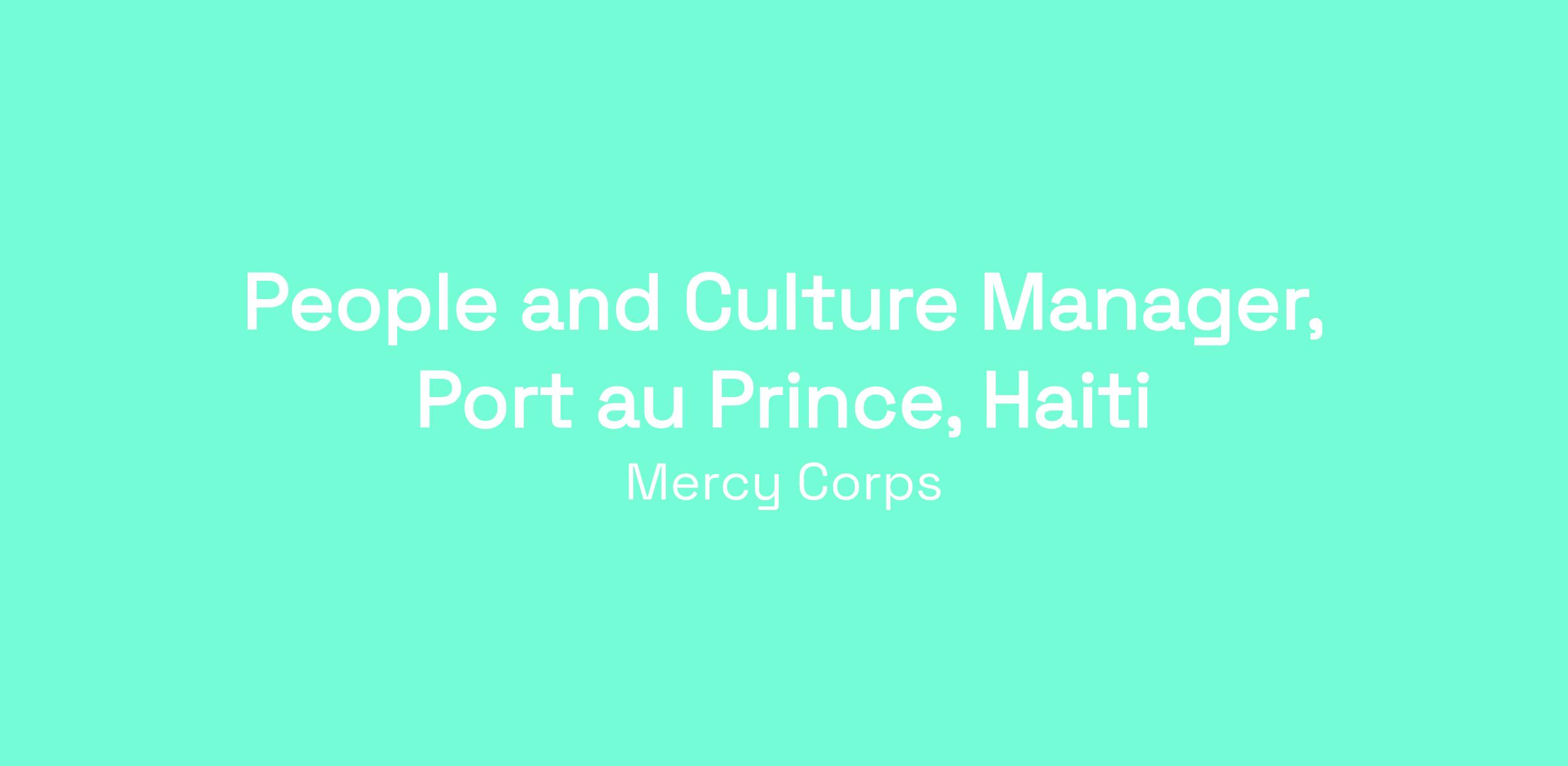 The People and Culture Manager will provide leadership of the human resource and organizational development function in Mercy Corps Haiti. S/he will drive excellence in all people functions of all offices in Haiti through 1) developing and implementing people strategy as well as systems and processes (such as performance management systems), 2) Build the capacity of teams through appropriate learning opportunities, 3) Promote a healthy working environment through building a culture of trust, accountability and mutual respect.