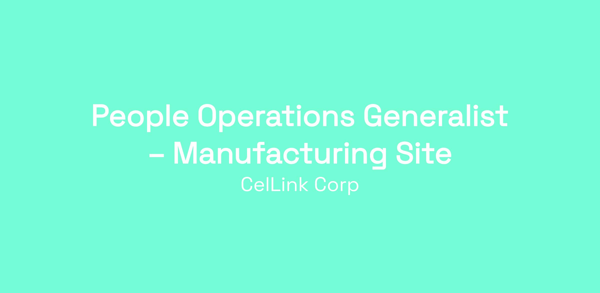 People Operations Generalist – Manufacturing Site