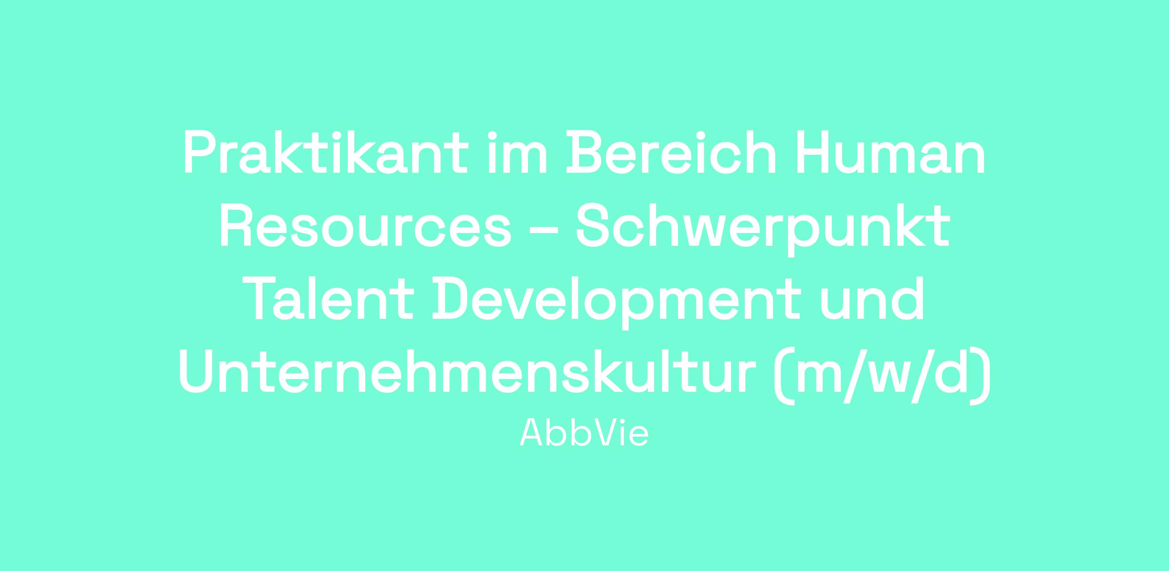 Deine Hauptaufgabe in diesem Praktikum besteht darin, den Bereich Talent & Culture bei der Entwicklung und Umsetzung von Talent-Development-Initiativen sowie kulturellen Programmen bei AbbVie Deutschland zu unterstützen. Du übernimmst dabei sowohl administrative als auch analytische Aufgaben, unterstützt bei der Organisation von Trainings und Workshops und wirkst an der Vorbereitung, Kommunikation und Auswertung von Umfragen und Initiativen mit. Zudem arbeitest du teamübergreifend mit anderen HR-Funktionen zusammen und unterstützt an Schnittstellen sowie in Projekten.
