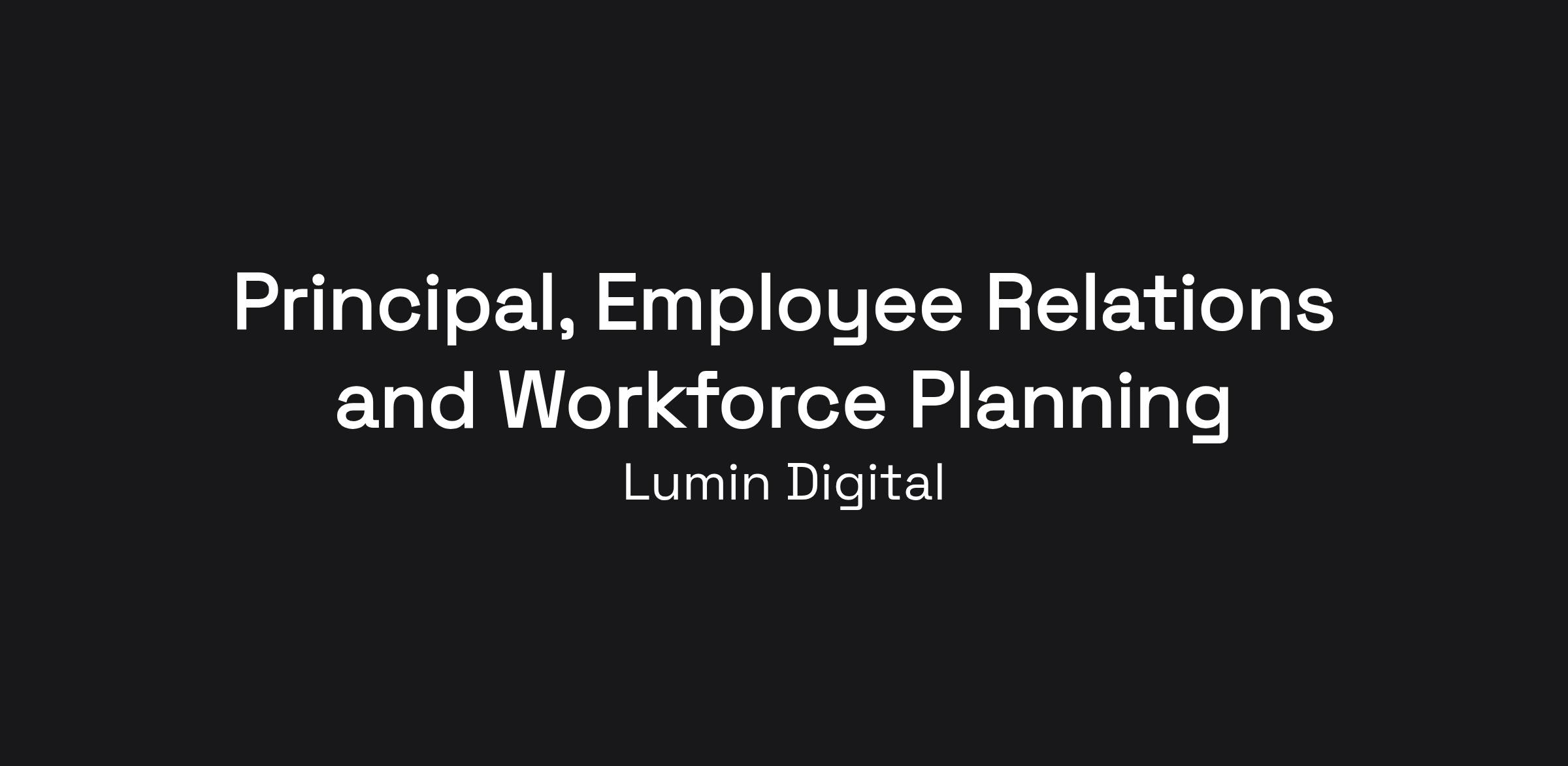 The Principal, Employee Relations and Workforce Planning serves as Lumin Digital's senior practitioner at the intersection of people risk, organizational effectiveness, and talent strategy. This role is the company's primary SME on employee relations — building the frameworks, practices, and compliance infrastructure that protect employees and the organization across a 35+ state footprint, while simultaneously driving the workforce planning and organizational design work that prepares Lumin for sustainable, AI-informed growth. As a direct partner to the Chief Talent Officer and senior leadership, this role operates as a senior individual contributor at both the strategic and functional level, translating business transformation priorities into people and organizational capability.