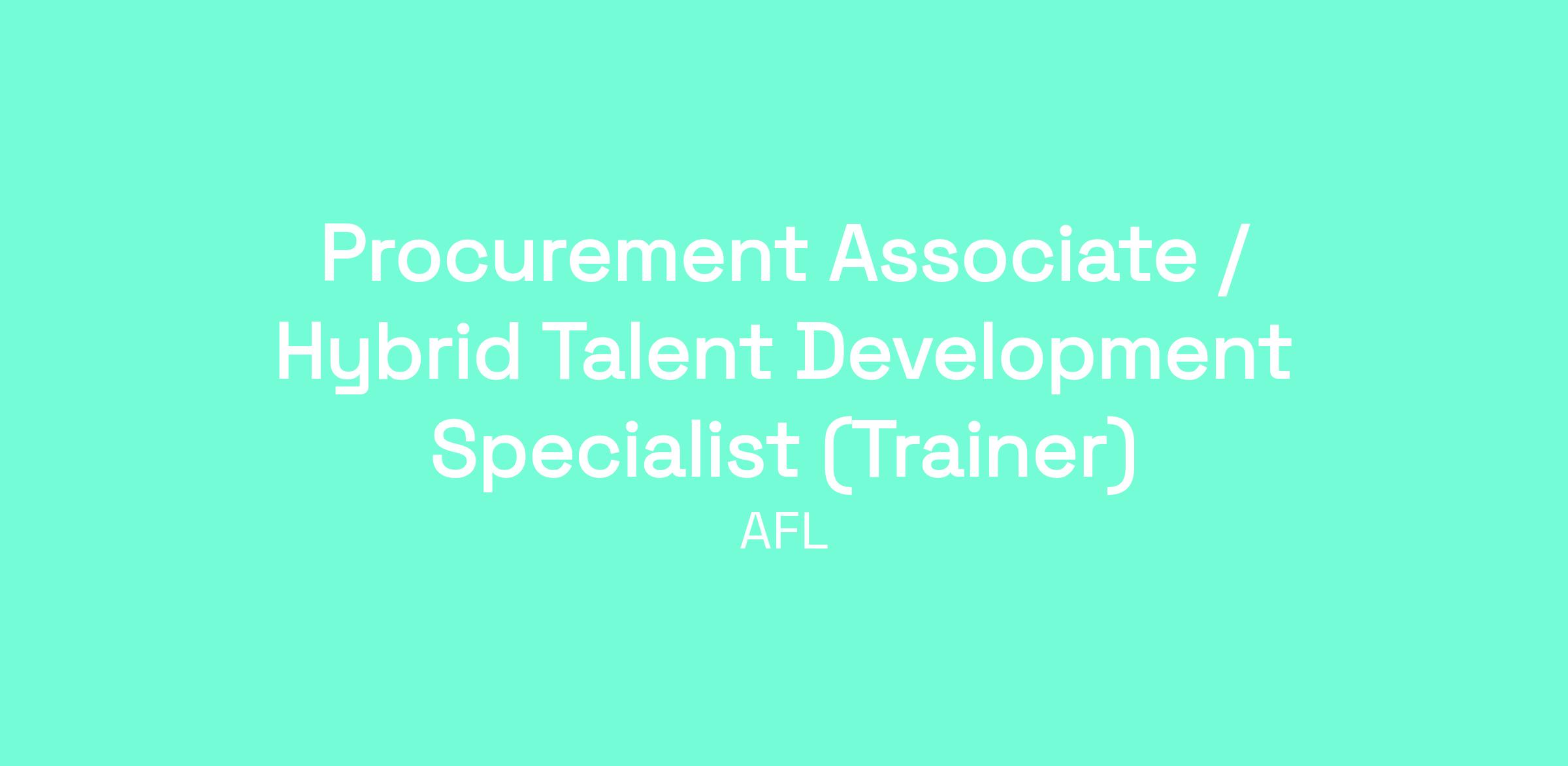Job Title: Procurement Associate / Hybrid Talent Development Specialist (Trainer)
