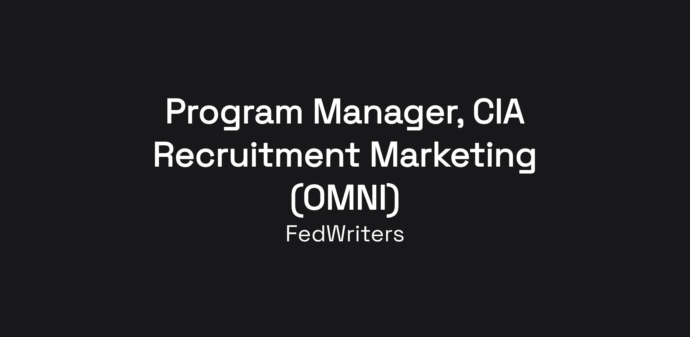 FWI is building a team to deliver recruitment advertising and marketing services — including media strategy, creative development, event support, market research, and interactive recruiting tools — in support of the Central Intelligence Agency's Talent Acquisition Office. As the Program Manager, you will serve as the single point of accountability to the Sponsor for the daily execution, performance, and delivery of the entire OMNI program across its five-year period of performance.