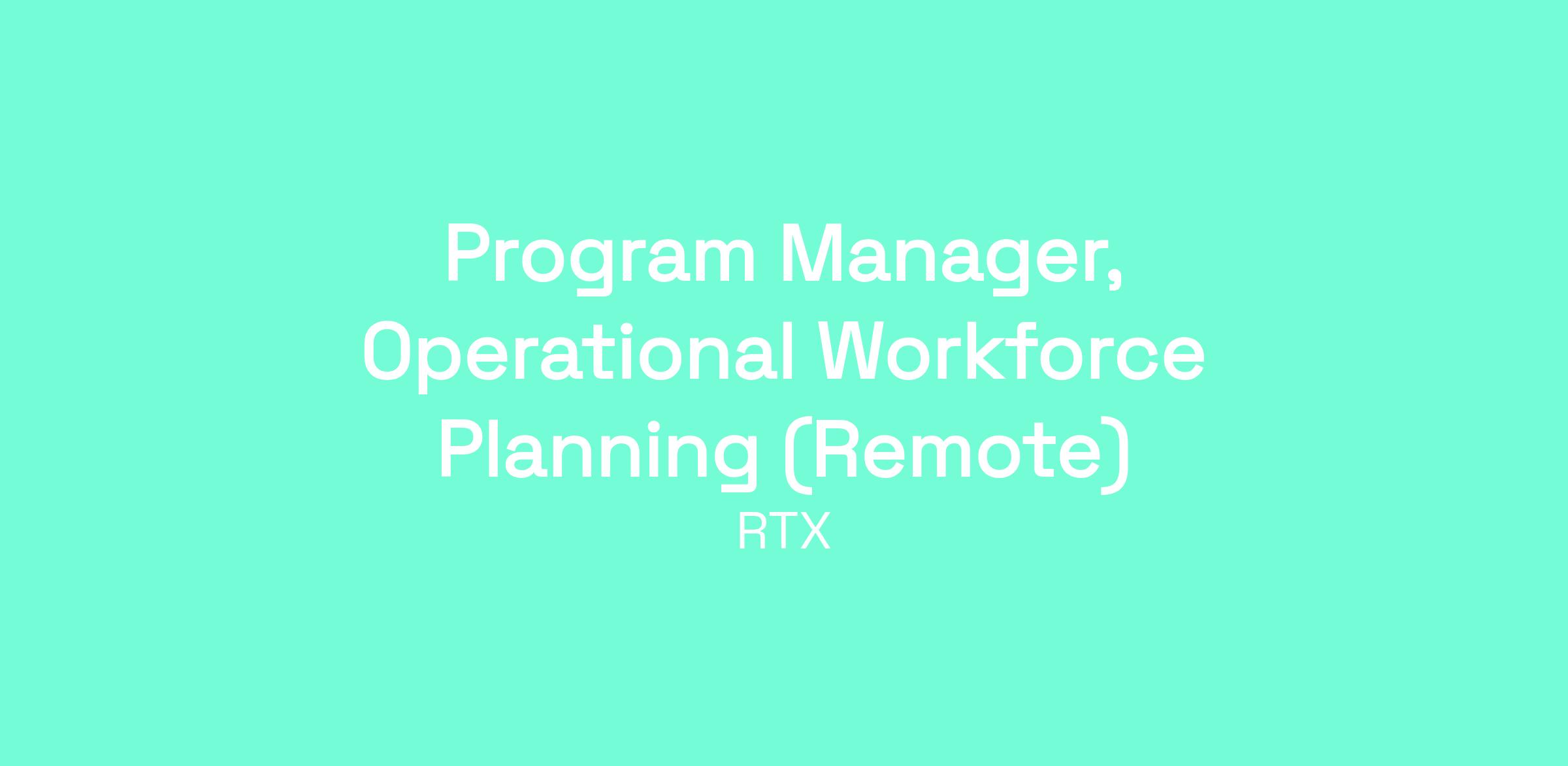We are seeking an experienced Program Manager with a strong background in operational workforce planning process implementation, maturity, and execution, with demonstrated expertise in Workday Adaptive Planning. The ideal candidate will play a pivotal role in advancing workforce planning capabilities across the enterprise by establishing robust processes and frameworks, ensuring alignment with business objectives, and driving continuous improvement. This role requires exceptional stakeholder management and consulting skills to lead complex, end-to-end implementations and ensure RTX has world-class talent in the right place at the right time with the right skills.