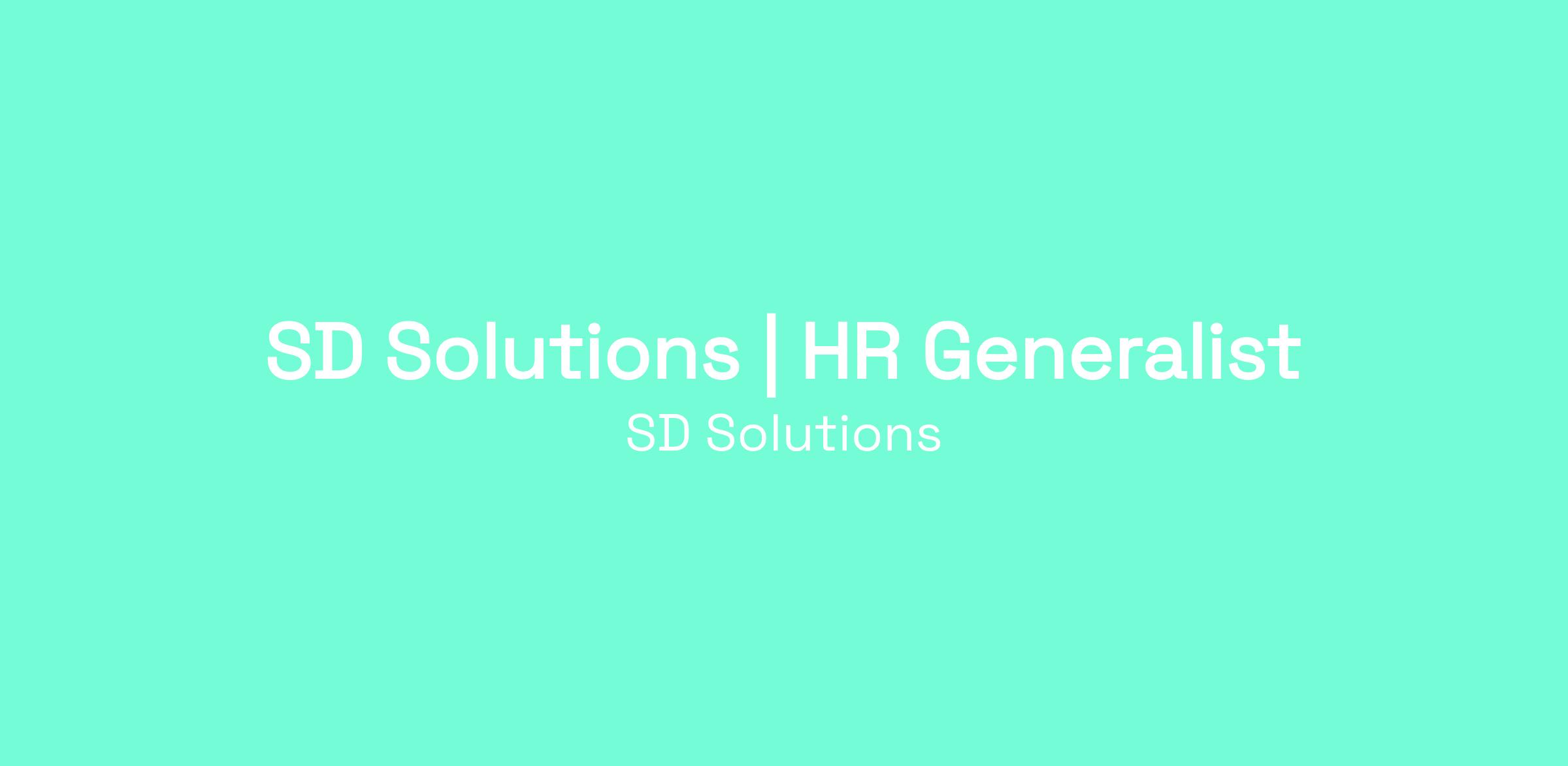 We are looking for an HR Generalist/Office Administrator who will take part in bringing incredible talents to SD Solutions