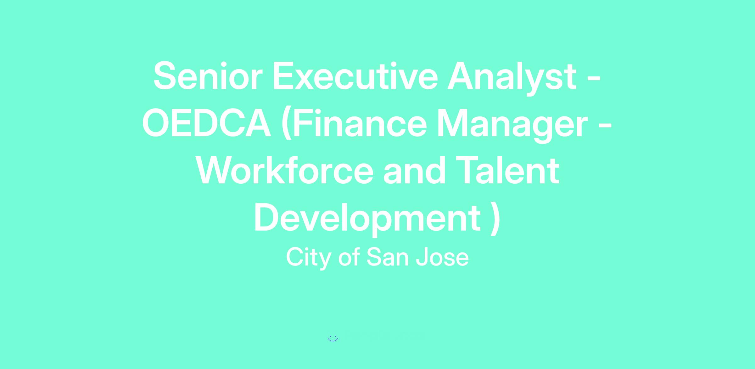The classification for this role is Senior Executive Analyst with a working title of Finance Manager for the Workforce and Talent Development Division.
