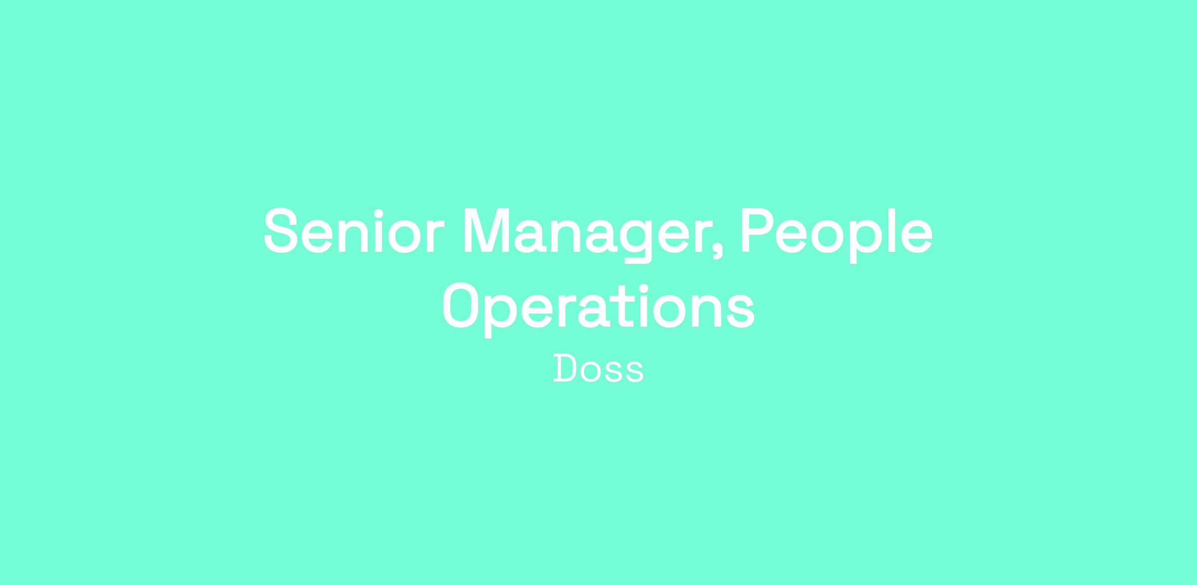 As our Senior Manager, People Operations, you'll own the infrastructure that makes Doss run: the systems, processes, and team that touch every employee from Day 1 through offboarding.