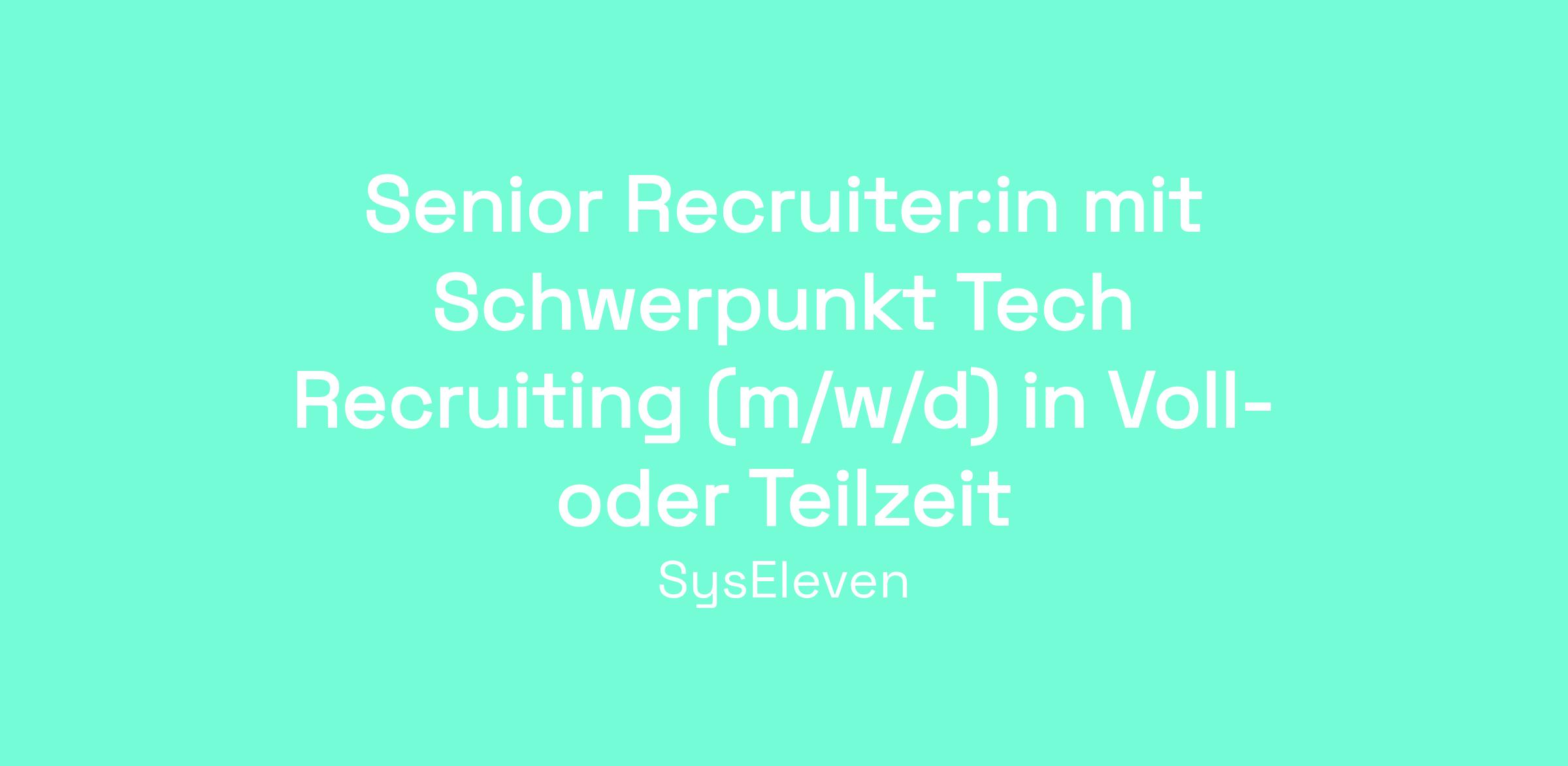 Senior Recruiter:in mit Schwerpunkt Tech Recruiting (m/w/d) in Voll- oder Teilzeit
