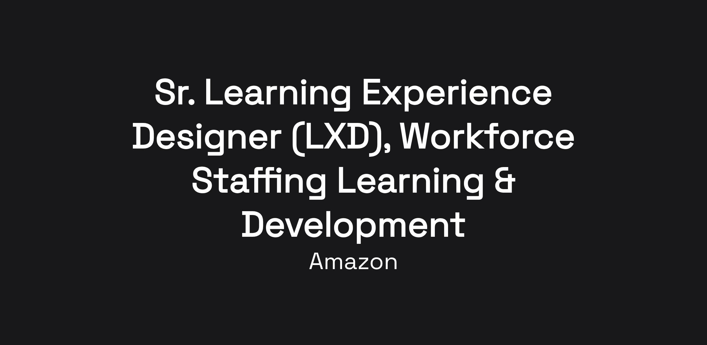 The Workforce Staffing Learning & Development team is seeking an innovative Sr. Learning Experience Designer to join our dynamic team. In this role, you'll design, develop, and enhance learning programs that impact associates worldwide in Amazon's hiring operations. As a self-motivated professional with a passion for learning and development, you'll collaborate with cross-functional teams, subject matter experts, and program managers to create impactful content and implement program offerings. The ideal candidate possesses expertise in adult learning principles and instructional design methodologies, with a strong foundation in data-driven decision making.