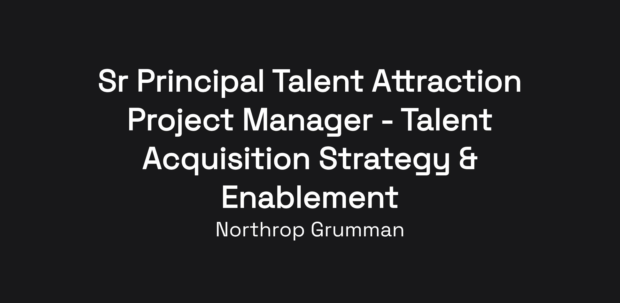 Northrop Grumman Aeronautics Systems is seeking a strategic and execution-focused leader to join our Talent Acquisition Strategy & Enablement (TASE) team as a Talent Attraction Project Manager. This position will be based in El Segundo, CA, Palmdale, CA, San Diego, CA or Melbourne, FL. Virtual work arrangements will also be considered.