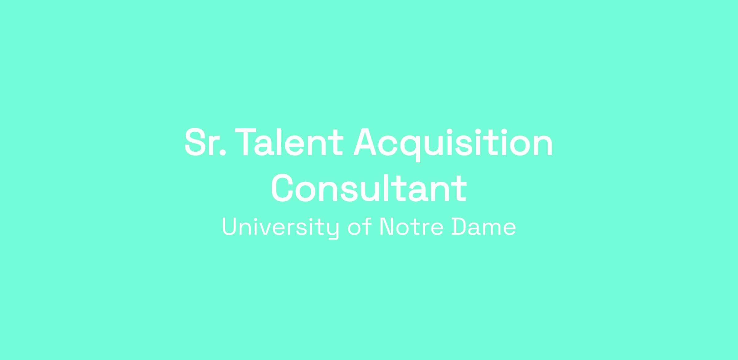 The University of Notre Dame is seeking an experienced, strategic, and relationship-driven Senior Talent Acquisition Consultant to help shape talent for our University Relations division.