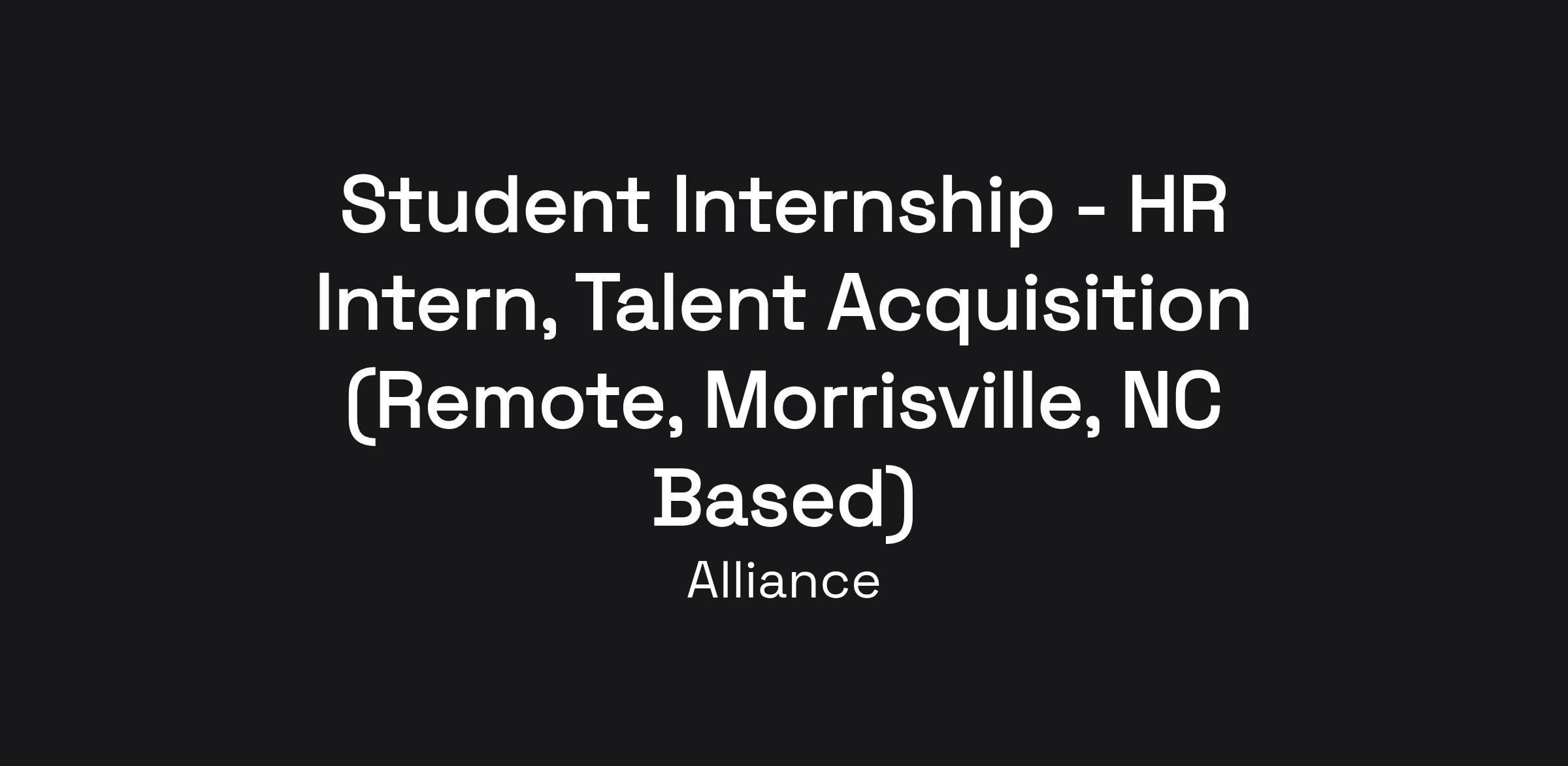 Alliance is seeking a Spring or Summer 2026 intern to join the Human Resources Talent Acquisition team. The ideal candidate is motivated to learn and develop skills in recruitment and HR processes. This role supports core HR functions, including recruiting coordination, document management, and career fair logistics. The intern will work remotely and must reside in North Carolina. Compliance training in Morrisville is required prior to the start date.