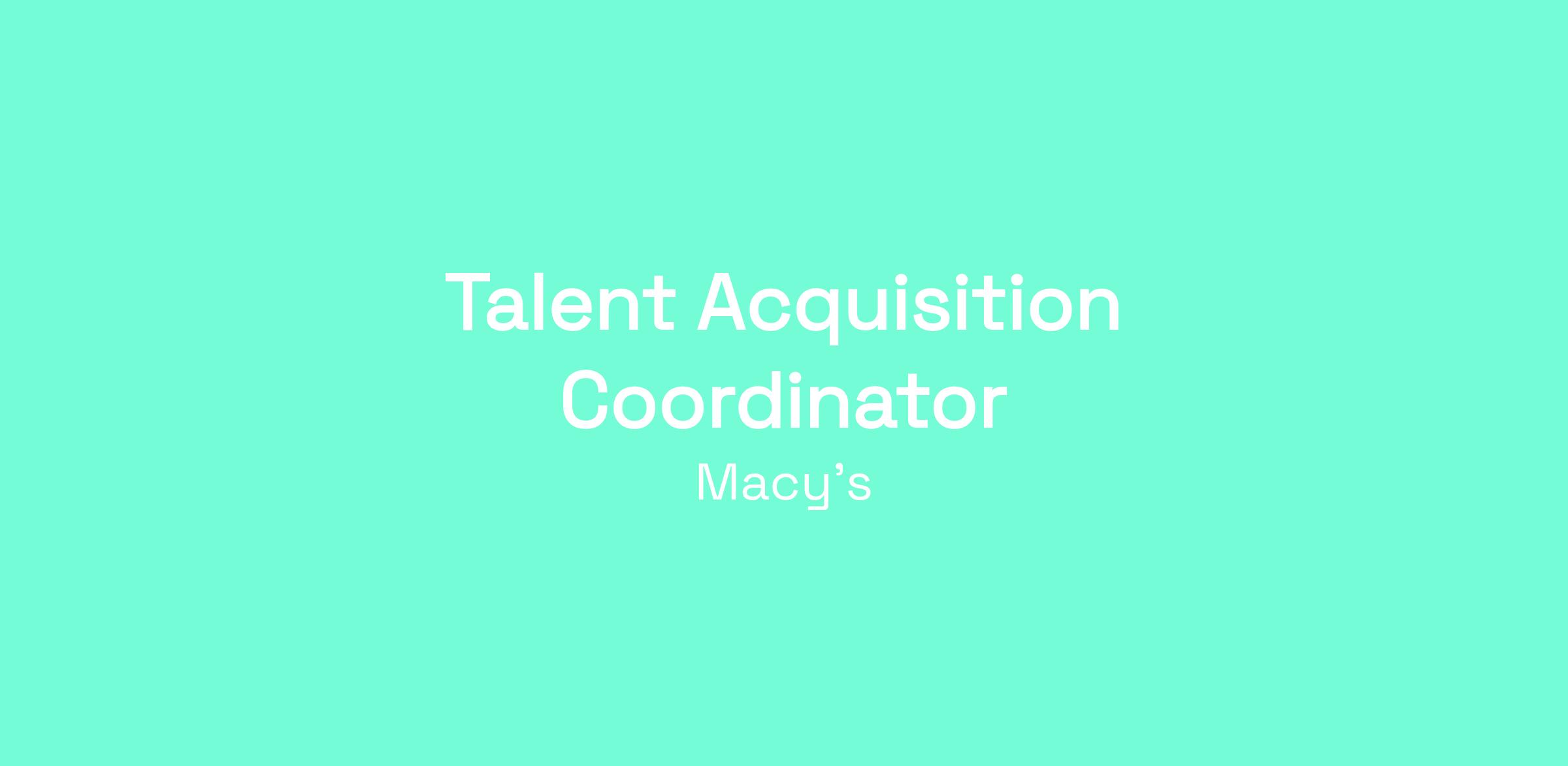 DescriptionPosition Title: Talent Acquisition Coordinator