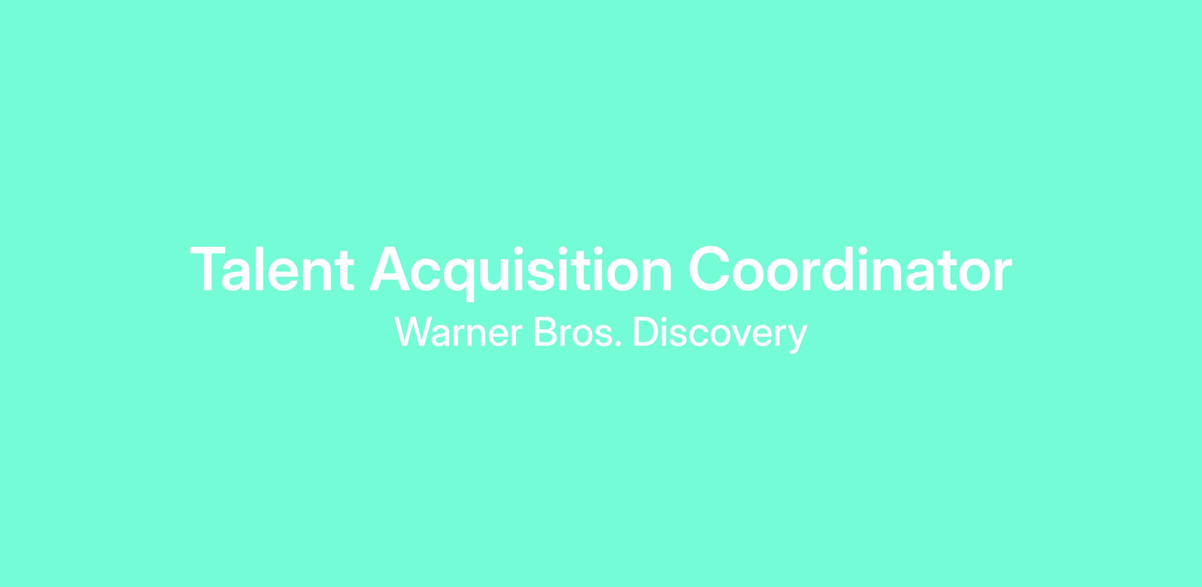 The Talent Acquisition Coordinator is a critical member of Warner Bros Discovery’s Talent Acquisition team. This position will provide a best in class recruiting experience to candidates and provide operational excellence to the Talent Acquisition team across India.