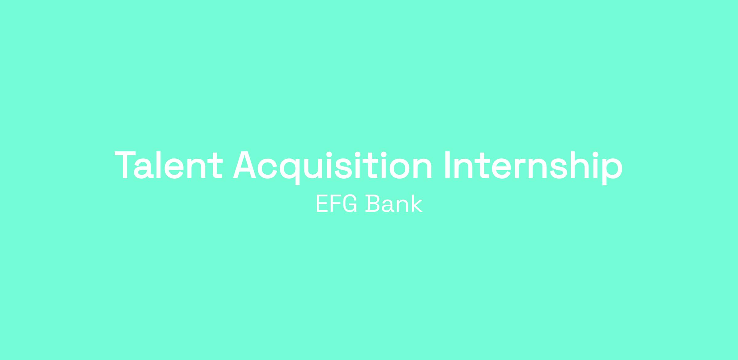 The Talent Acquisition (TA) team is part of the Human Resources function and is responsible for attracting and hiring the best talent in the market for EFG Bank.