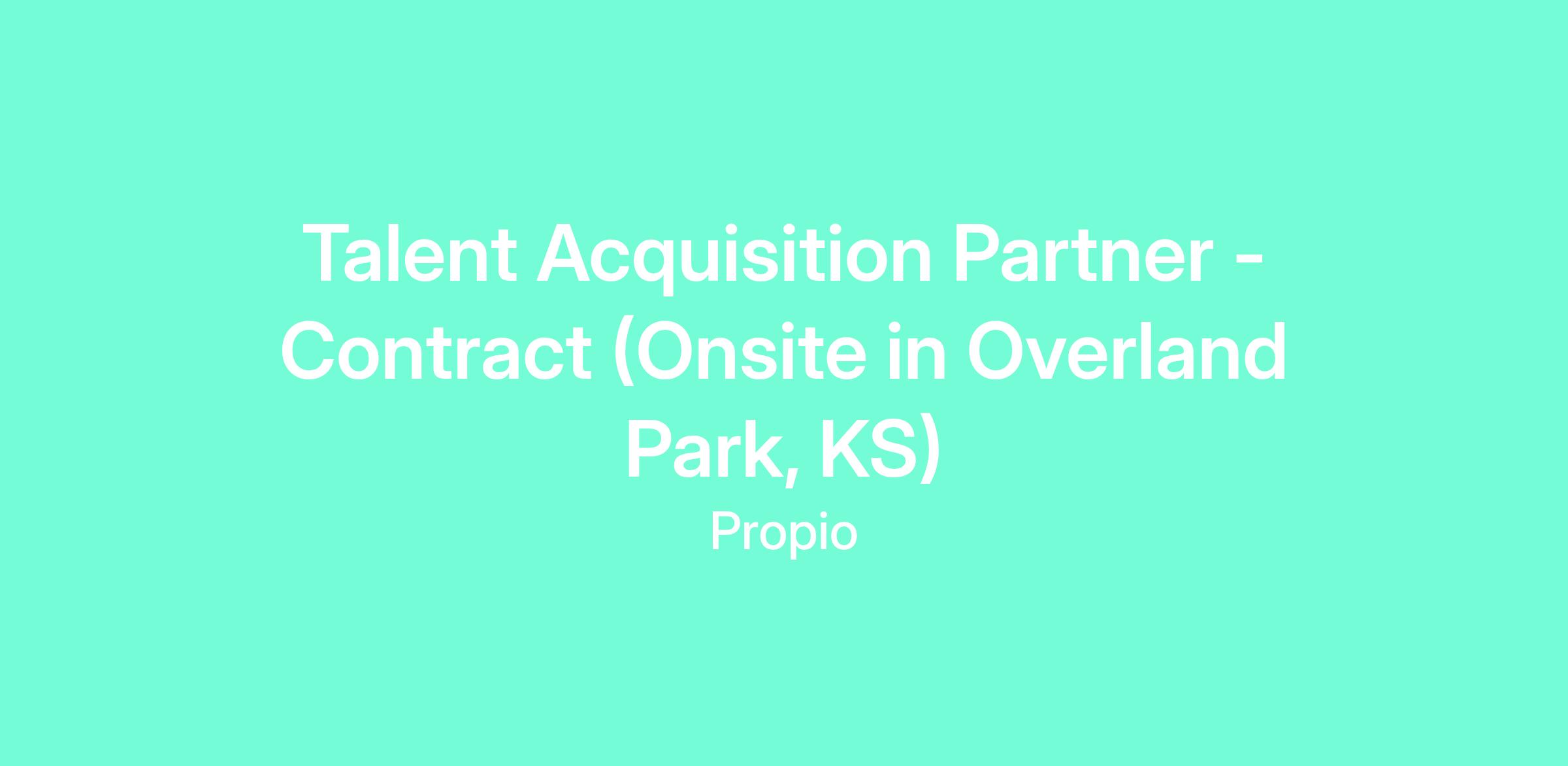 We are seeking a highly motivated and results-driven Talent Acquisition Partner (Contract) to join our team onsite in Overland Park, KS. The Recruiter/Talent Acquisition Partner will be responsible for sourcing, screening, and selecting candidates to fill open positions within our organization. The ideal candidate will have a passion for talent acquisition, excellent communication skills, and a proactive approach to recruiting.