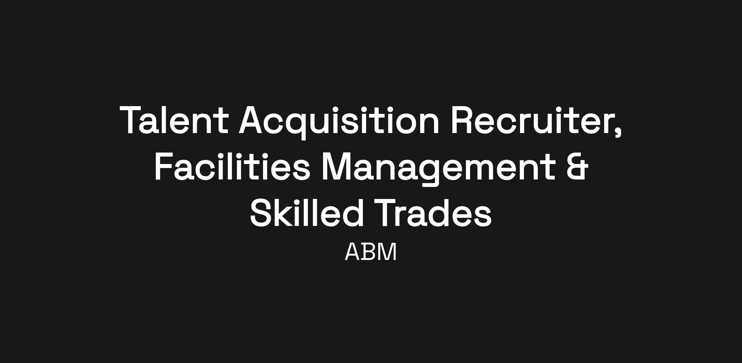 As an ABM Talent Acquisition Recruiter, you will be responsible for identifying, engaging, and hiring exceptional professionals in the facilities management and commercial skilled trades fields. You will work closely with hiring managers to understand their staffing needs, develop recruitment strategies, and manage the full recruitment life cycle. This role will play a crucial part in ensuring our organization is staffed with the right individuals who can contribute to our success.
