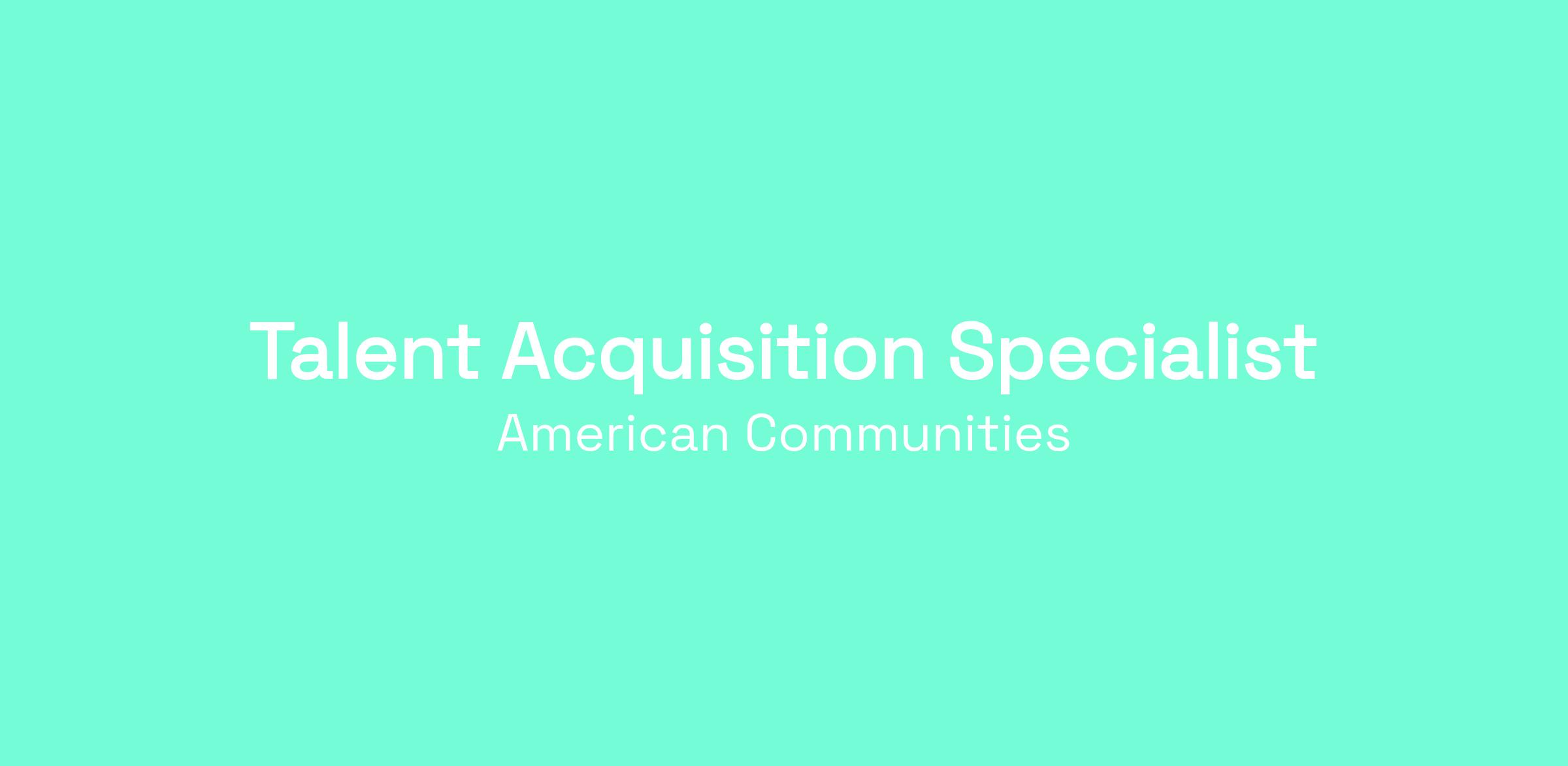 American Communities is seeking an enthusiastic, results-oriented Talent Acquisition Specialist to help attract and hire exceptional talent for our growing organization. This role plays a critical part in delivering a seamless candidate experience while supporting hiring managers and advancing our recruiting initiatives.