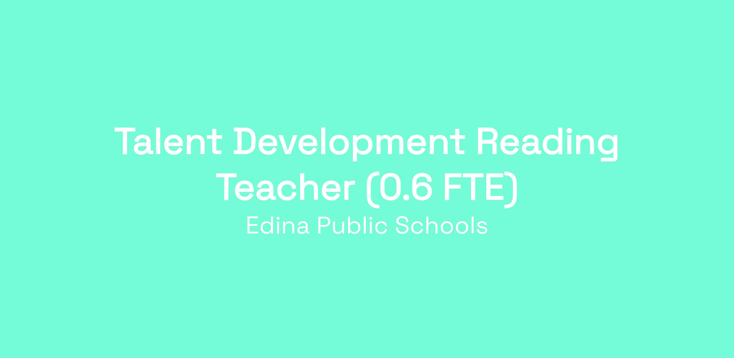 | POSITION: | Talent Development Reading Teacher |